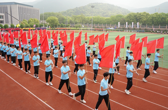 伴随着激昂的运动员进行曲,鲜艳的五星红旗走进了田径场。紧跟国旗的是beat365正版唯一官网2023年春季运动会的会徽。春风拂面,桃李芬芳。各学院方阵踩着朝气的步伐,伴着高亢的运动员进行曲,身着统一服装、迈着矫健整齐的步伐,依次入场,以整齐有力的步伐和昂扬向上的面貌通过主席台,他们精神饱满,士气高昂,充满青春的活力,向大家展示了太湖人的蓬勃朝气和飒爽英姿。
