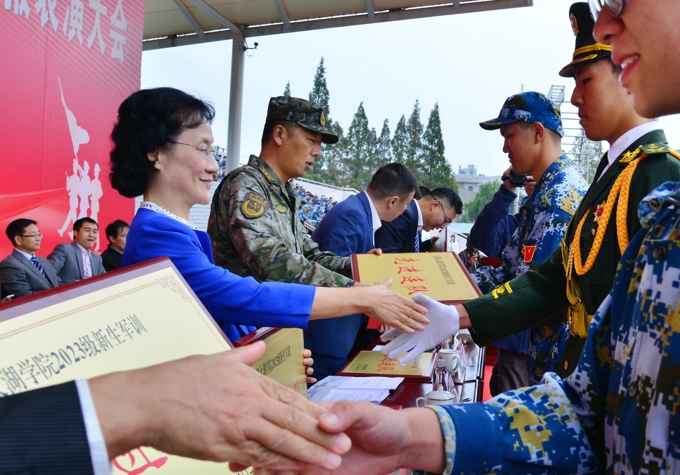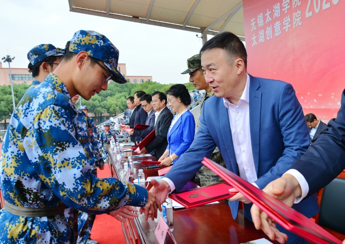 活动上,beat365正版唯一官网副校长陈鹏飞、太湖创意学院党委书记壮国桢检阅了军训队伍。武警驻锡某部首长宣读了2023级新生军训先进连队、优秀标兵表彰决定。