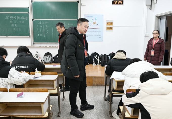 校长金成、执行校长李廉水深入七号教学楼和八号教学楼考场,对考试秩序、考场环境、考生纪律、监考教师履职等情况进行重点检查。从巡考情况看,考场秩序井然、气氛严肃和谐;学生精神饱满、认真作答试卷;监考教师恪尽职守、纪律状况良好。校领导对期末考试的组织工作给予了充分肯定,同时强调要进一步强化对监考教师的培训和管理,进一步把责任落实落细,严格执行相关考试制度,加强学生诚信考试教育,营造考风端正、考纪严明的良好氛围,以考促学,以考促教,切实提高人才培养质量。