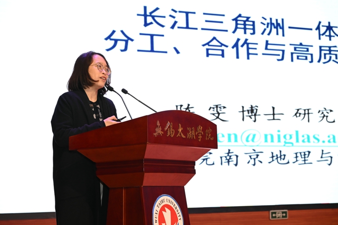 东南大学中国特色社会主义发展研究院首席专家丁茂战教授、中国科学院南京地理与湖泊研究所二级研究员陈雯,分别以《形势、速度、高质量——国务院政府工作报告精神的三大要点》 《长三角一体化:分工、合作与高质量》为题作了主题演讲。