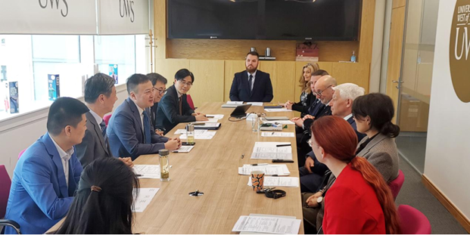 访问西苏格兰大学期间,代表团与西苏格兰大学校长James Miller,副校长Marcus Ross、Stephanie Pitticas以及该校工学院、国际事务部门相关进行洽谈,并组织召开苏格兰学院中英联合管理委员会工作会议。会上,金成校长与James Miller校长对苏格兰学院项目首期合作目标圆满达成均给予了高度评价,并对首批赴英学习学生的出色表现给予肯定,两校领导期待在此基础上进一步深化合作、实现高水平办学。
