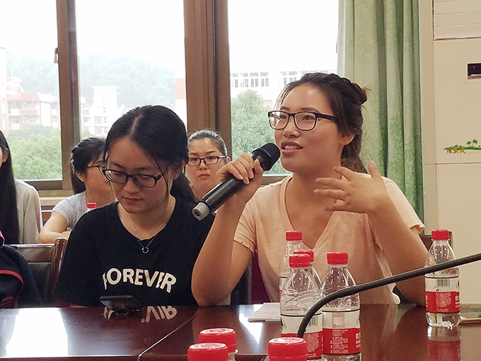 与会学生一一发言,感谢母校四年的精心培养,并把美好的祝福留给学弟学妹们。会计学院财会131班的周佳怡是班级团支部书记,毕业后被中国人民银行苏州分行录用。她说能够在激烈竞争中入职银行,全靠自己扎实的财会理论功底和在实习实践中积累的实际工作能力。这些都是老师教给的本领,是学校培养的结果。她建议学校今后在课程安排上,尽量提早到大一、大二阶段,给大三、大四学生更多外出实习、求职的时间。