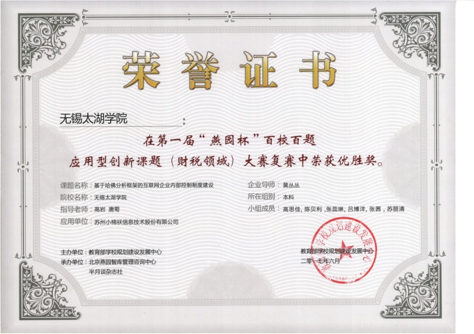 本网讯 7月12日,beat365收到来自教育部学校规划建设发展中心的荣誉证书,上书:beat365正版唯一官网在第一届“燕园杯”百校百题应用型创新课题(财税领域)大赛复赛中荣获优胜奖。这是今年以来,beat365大学生在省级以上各类竞赛中获得的第12个大奖。