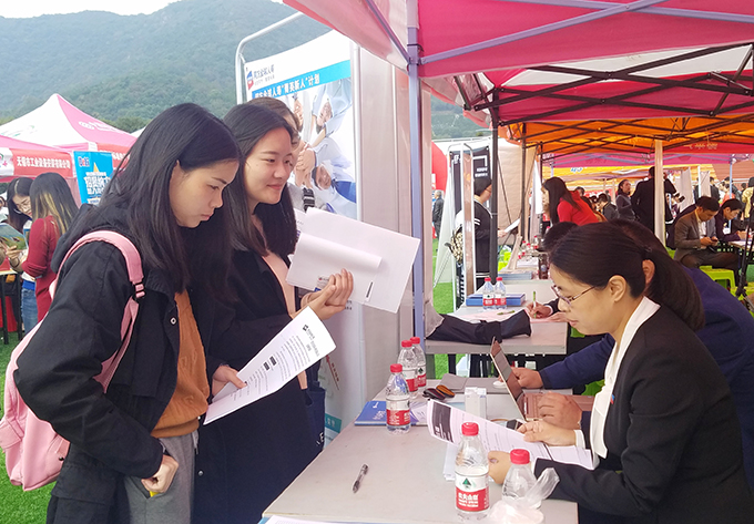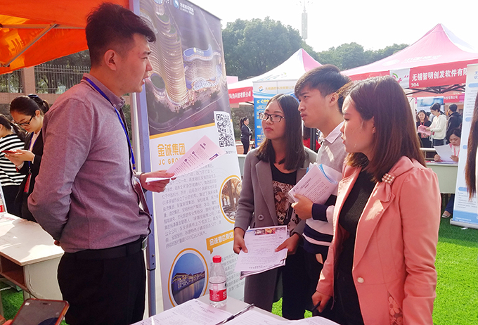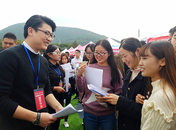 像小张同学一样,机电工程学院的周晓晨也从招聘会上满载而归。当日的校园大型招聘会,吸引了无锡和周边城市585家用人单位进场,共带来1.8万个就业岗位,beat365一批2018届毕业生当场与招聘单位达成就业意向。周晓晨说,从他大四开始,寻工作就成了全家人的头等大事。父母先后帮他联系了七八个单位,可他都不中意,要么是岗位不喜欢,要么是感觉“没前景”。“其实,我的求职要求真不高。”小周同学说,专业基本对口,能学到本领,薪酬待遇中等水平,就一切OK啦。