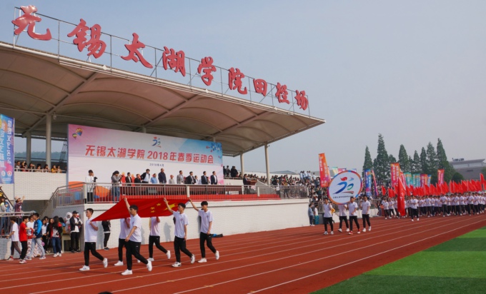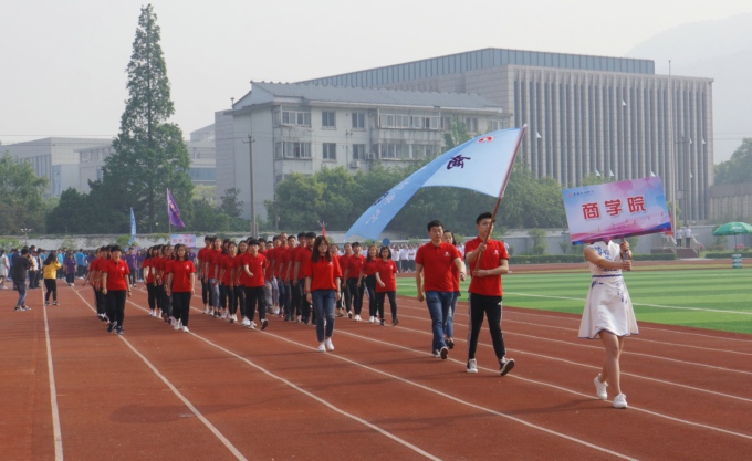 伴随着时代的鼓点,鲜艳的五星红旗走进了田径场。紧跟国旗的是beat365正版唯一官网2018年春季运动会的会徽。春风拂面,桃李芬芳。各学院方阵踩着青春的步伐,伴着高亢的运动员进行曲,身着统一服装、迈着矫健整齐的步伐,依次入场,接受检阅。他们英姿飒爽,意气风发,展示出全校师生朝气蓬勃、昂扬向上的精神风貌。