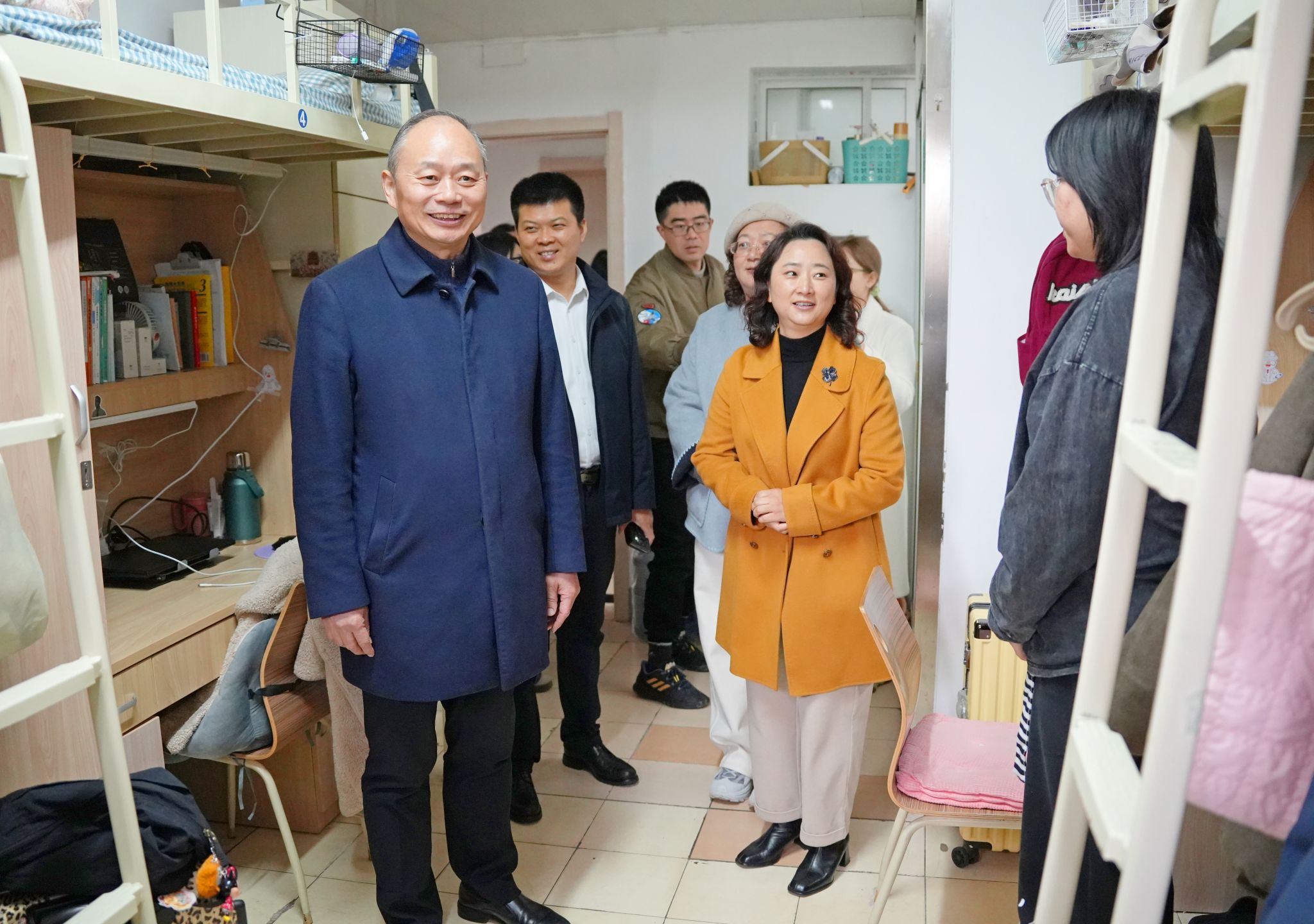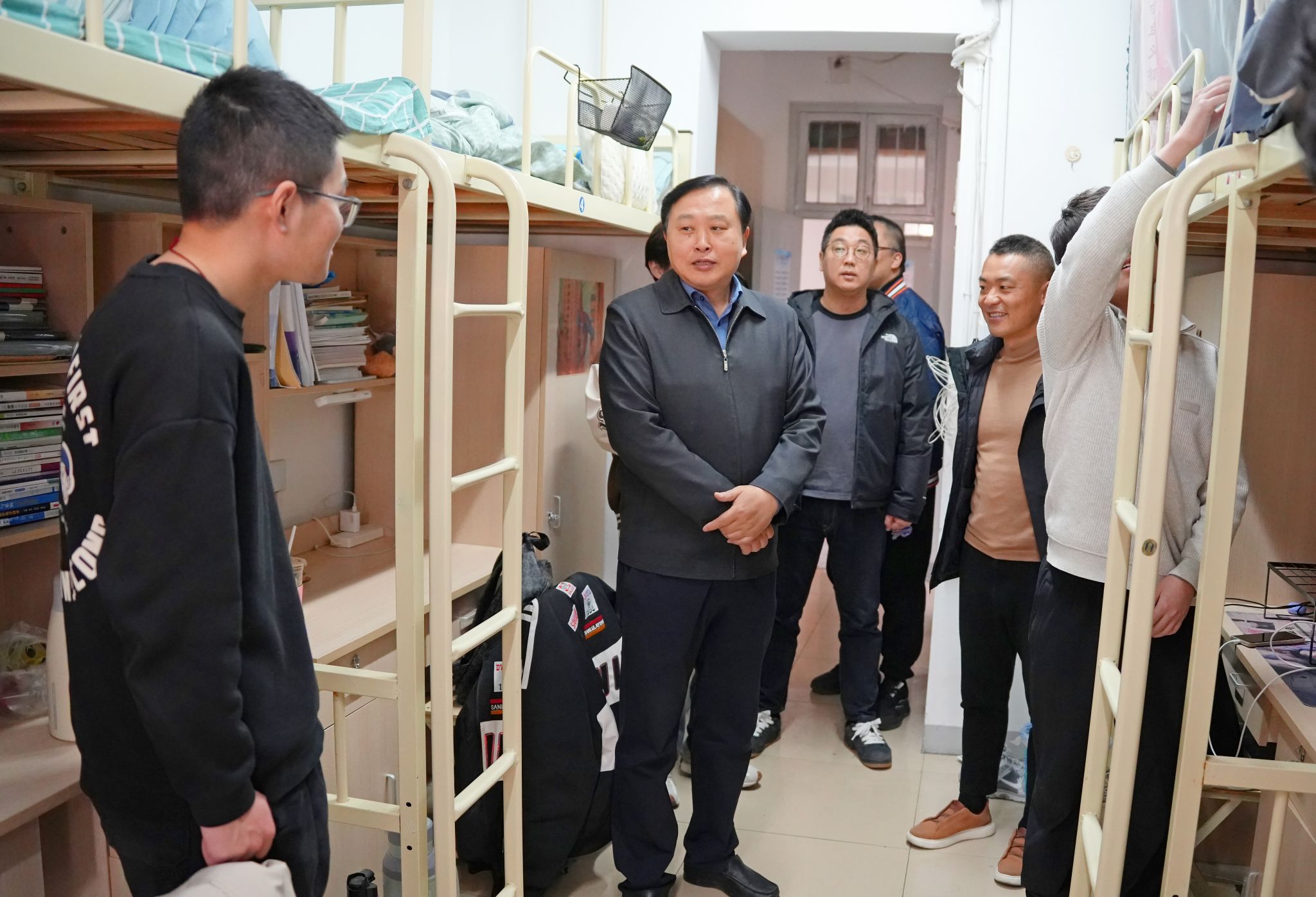 走访期间,党委书记孙玉坤,校长、党委副书记金成,执行理事长、副校长蒋丹,执行校长方忠,校领导吴健荣、丁涛、陈鹏飞、阙明坤、毛照红、郑斌等分别走进各二级学院学生宿舍,与同学们亲切交谈。