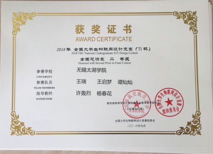 2018年全国大学生物联网设计竞赛(TI杯)全国总决赛 获奖名单: