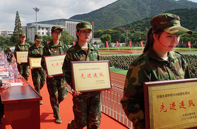 2018级新生开学典礼暨军训成果汇报表演大会在庄严的国歌中拉开帷幕,近3500名新生接受领导检阅,副校长何宏金、陈鹏飞检阅军训方阵,对全体新生致以亲切的慰问。大会进行了分列式表演,场面宏伟,气势磅礴,同学们英姿飒爽、意气风发,坚实有力的步伐,高昂嘹亮的口号,充分展示了太湖学子昂扬的斗志、饱满的激情和亮丽的青春。男女混合擒敌拳、战术动作、应急棍表演稳健有力,挥洒自如,将军训大会的气氛推向高潮,博得了全场热烈掌声。