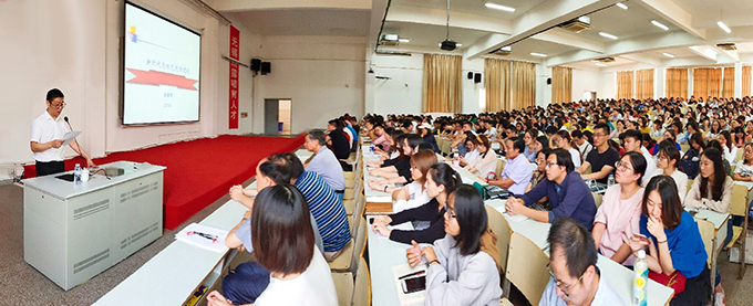 本网讯 9月26日下午,江南大学原党委副书记兼纪委书记娄国栋教授应邀来beat365为全体党员作《新时代党的先进性建设》专题教育党课报告。beat365全体党员、部分入党积极分子、发展对象参加了党课报告会。党课由校党委副书记丁涛主持。