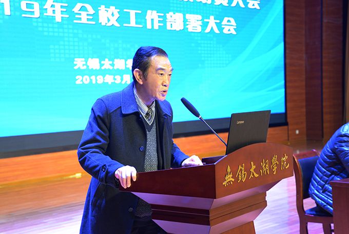 校长徐从才对全校2019年工作进行了详细部署,他指出,学校2019年工作指导思想是用习近平新时代中国特色社会主义思想武装头脑,贯彻落实全国、全省第26次党的建设工作会议精神,以加强党的政治建设为中心,全面加强学校党委和基层党组织建设;以深化产学合作,完善应用型人才培养体系,构建为地方经济社会发展服务体系为抓手推动学校转型向纵深发展,力争成为省域应用型高校示范校;坚持“凝练方向、汇聚队伍、建设平台、扩大成果”的思路加强专业学科建设,努力实现硕士学位授予权的突破;以教育部专家组考察反馈意见为重点,瞄准新时代应用型本科教育的新要求,统筹协调、明确方向、突出重点、系统推进,推动本科教学评估整改各项举措落地见效,用本科教学评建的新成果迎接新中国成立70周年。