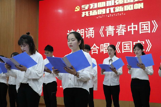 仪式上,艺术学院学生党员们还带来了表演节目,诗歌《青春中国》字里行间澎湃着对祖国的热爱、对青年的赞颂,歌曲《国家》道出了国与家的深厚情感,展现了国的强大与家的祥和。