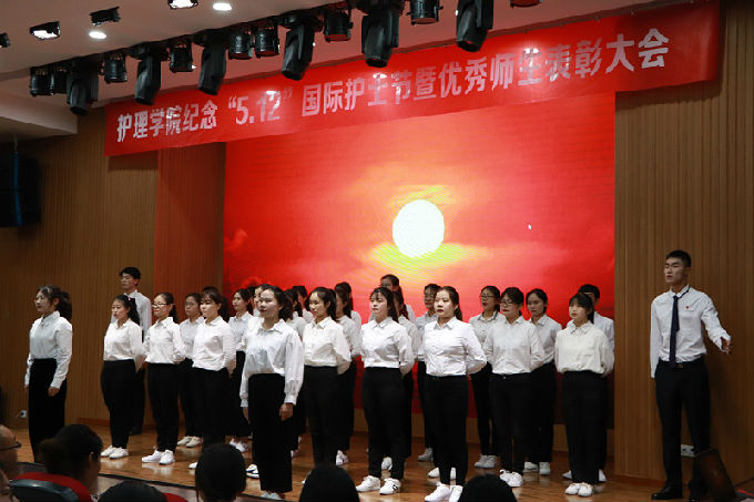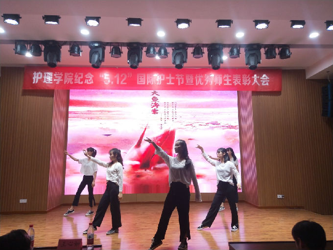 接着开始大会第一部分,节目表演。首先亮相的是一群朝气蓬勃的护生,给大家带来合唱《我们都是追梦人》,追梦路上虽苦,但护生们却不怕艰辛,勇往直前。然后,一群白衣天使展示护理礼仪,白衣天使们不仅展现出了护生独有的专业形象与仪态之美,更展现出了护理学院对人才的全面培养和人文关怀之心。接着,由学生代表朗诵《点燃生命的太阳》,这个节目体现了作为护士的奉献精神。最后舞蹈表演《大鱼海棠》,舞蹈演员们面带微笑,姿态优美,展现了护生的多才多艺。