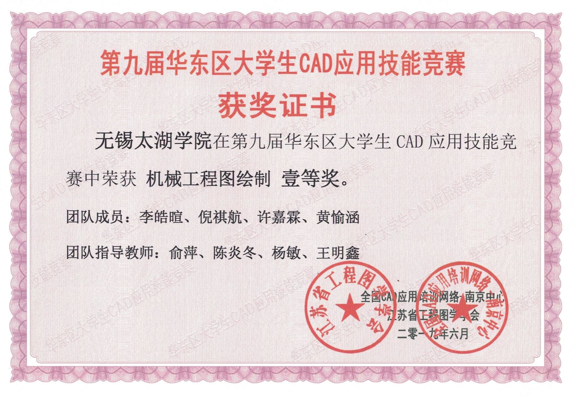本网讯 近日,由全国CAD应用培训网络、江苏省图学协会主办,南京农业大学工学院承办的“第九届华东区大学生CAD技能应用竟赛”落下帷幕。beat365机电工程学院36名学生经过一学年的努力备战,在指导老师俞萍、陈炎东的带领下参加了此次竞赛,取得了优异成绩,其中,二维机械工程图绘制更是取得了100%获奖的佳绩。