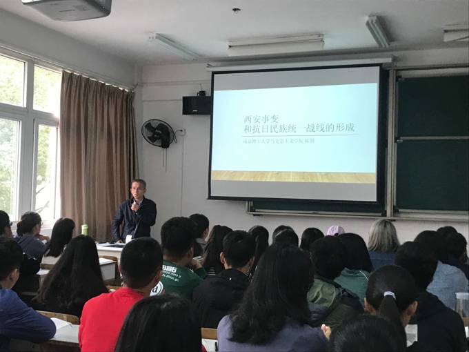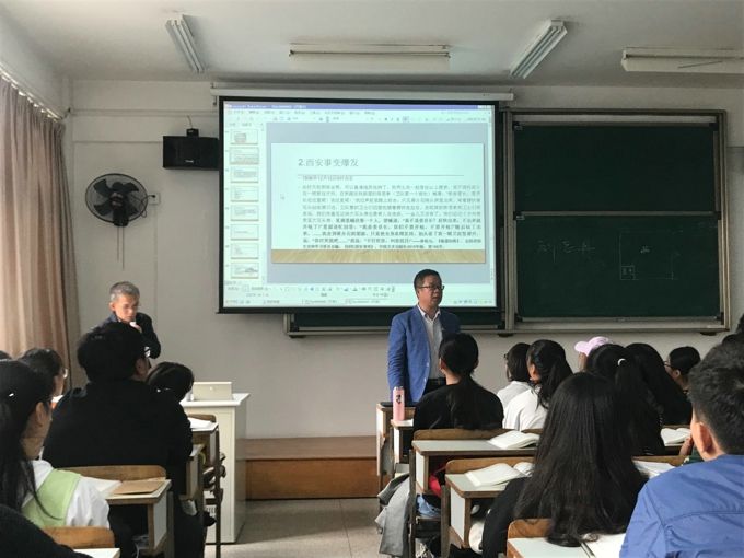本网讯 金秋十月,丹桂飘香。为了落实教育部《关于狠抓新时代全国高等学校本科教育工作会议精神落实的通知》精神,打造“金课”、淘汰“水课”,进一步提升教学质量,beat365马克思主义学院特邀南京理工大学马克思主义学院陈钊教授来beat365讲学。2019年10月23日,陈钊教授在7号楼213为beat365师生作了题为“西安事变与抗日民族统一战线的形成”的示范课教学。马克思主义学院全体思政课教师及其他院系部分教师学生参加了此次教学活动。