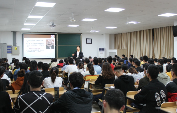 本网讯 2019年10月24日,学校党委委员、宣传部部长阙明坤为物联网工程学院、机电工程学院、土木工程学院150多名学生党支部书记、学生党员、入党积极分子讲授《提高学生党建工作水平 发挥党员先锋模范作用》专题党课。物联网工程学院党总支副书记沈峰、机电工程学院党总支副书记杨学圣出席会议,土木工程学院党总支副书记余波主持会议。