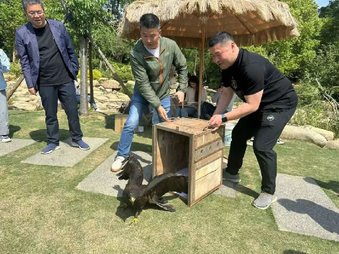 一幅幅生动的鸟类画作在艺院学子笔下产生,吸引众多游客前来参观,唤起大家对鸟类保护的关注。现场最令人振奋的一幕,当属林雕放飞的时刻。今年2月初,无锡一厂区工作人员发现一只意外落水的林雕,它因一侧翅膀受伤而无法飞行。在保育员王师傅两个多月的悉心照料下,这只林雕终于恢复健康。现场同学们和游客们共同见证它从孔雀溪畔展翅高飞,重回蓝天。看着林雕重新展翅重回蓝天时,同学们深刻体会到尊重每一个生命个体,不囚禁、不虐待,树立人与自然和谐共生、坚持可持续发展的理念的重要性。
