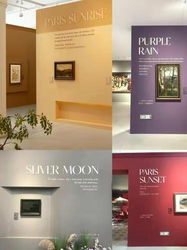 展览精心设置了 “PARIS SUNRISE”、“SLIVER MOON”、“PURPLE RAIN” 和 “PARIS SUNSET” 四个不同色调的主题区域。从清晨的第一缕曙光 “PARIS SUNRISE”,到夜晚温柔的 “SLIVER MOON”,再到雨中氤氲的 “PURPLE RAIN”,直至傍晚绚烂的 “PARIS SUNSET”,每一处都淋漓尽致地表达出从日出到日落的巴黎风情。