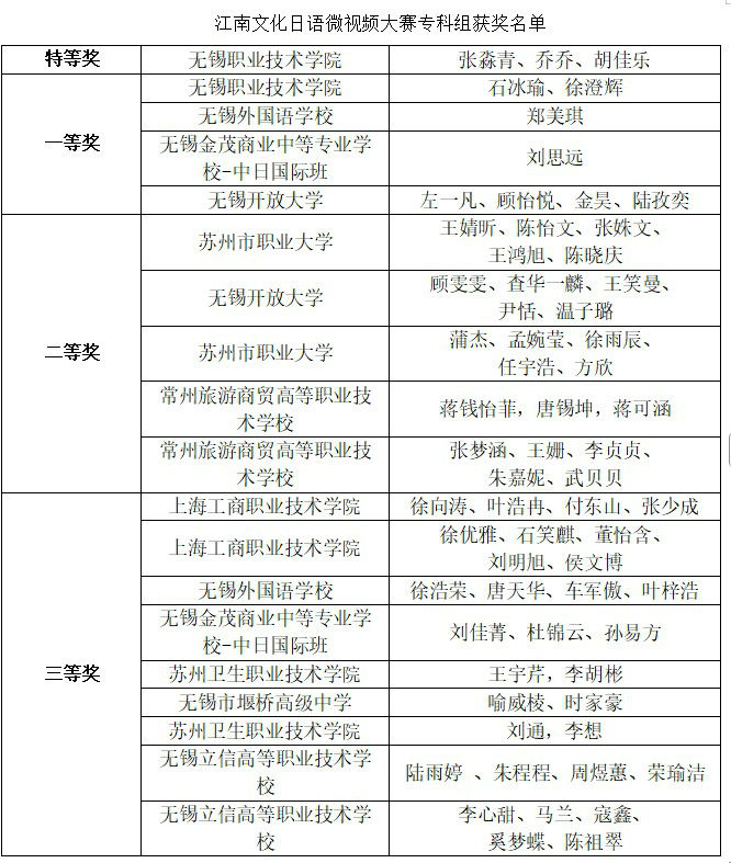 三组分别评出特等奖、一等奖、二等奖和三等奖之外,还设立了无锡-相模原友城奖和总领事奖。