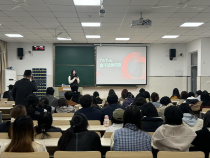 活动由太湖学院跨境电商实训基地负责人曹恒山主持,首先由汇塘(锡山)跨境电商产业园负责人须科分享大学生跨境电商“微创业”项目,随后由TikTok出海运营师朱菡妤为大家带来TikTok海外电商发展趋势分析和跨境电商运营经验分享。活动最后,老师们耐心细致地解答了多位学生提出的问题。
