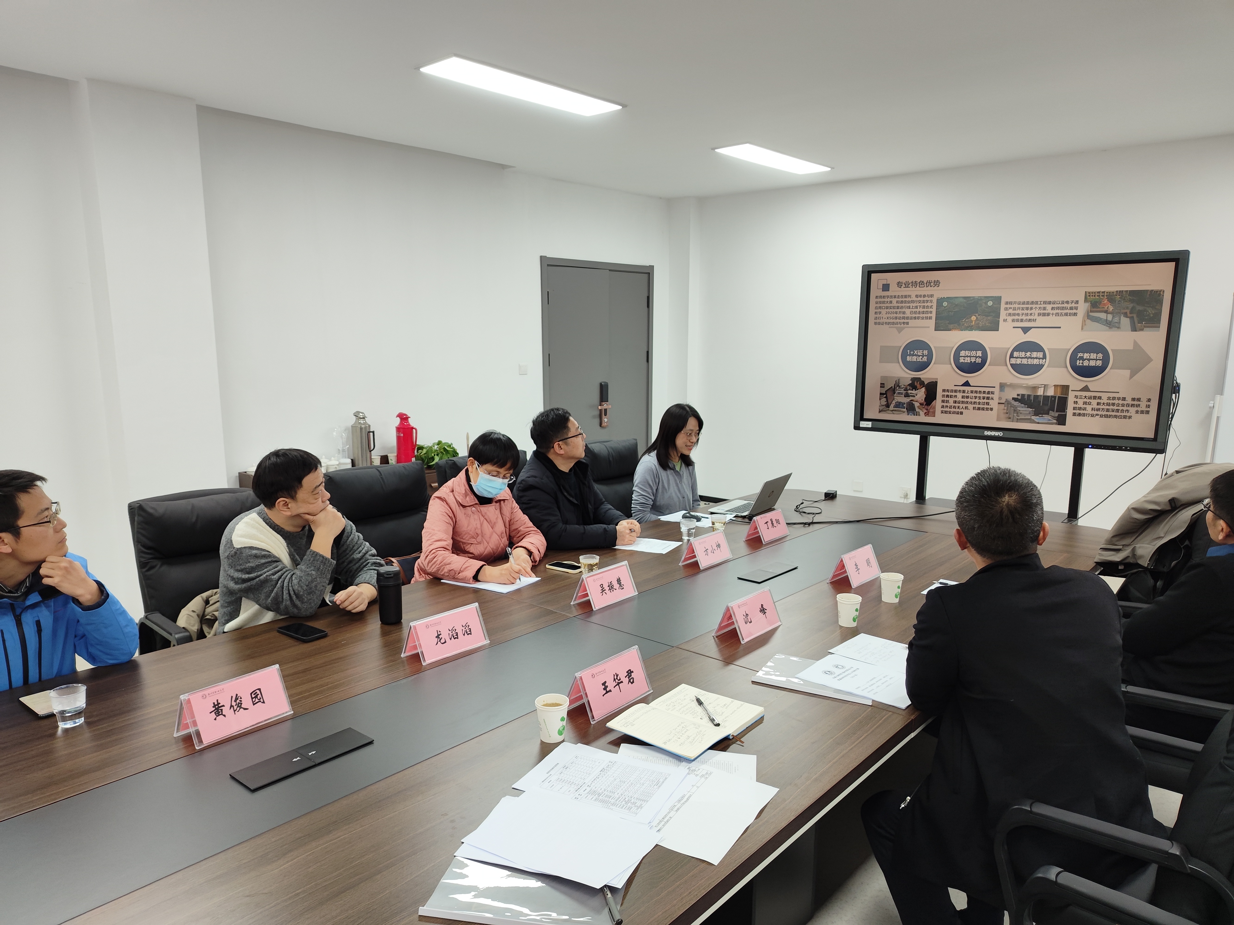 双方参会人员除beat365正版唯一官网物联网工程学院三位领导外,还包括扬州市职业大学电子学院吴振慧院长、方小坤副院长、现代通信技术专业丁晨阳主任、龙滔滔老师和黄俊园博士。双方代表共同探讨了3+2贯通培养的人才培养方案制定、学生转段要求和学生后续工作对接等问题,并由此达成了一系列共识。
