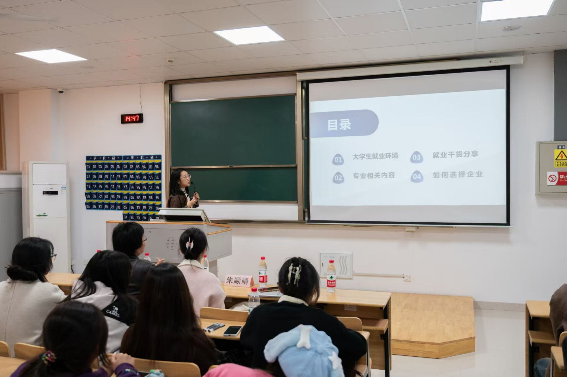 海阔凭鱼跃,天高任鸟飞。筑梦青春,“职”引未来!为促进校企合作,引导大学生正确做好职业规划,明确职业方向,提高职业竞争力,更好地去适应职场,迎接未来的每一个机遇和挑战,商学院校企交流见面会于2024年11月21日下午两点在工科实训楼A401顺利举行。此次活动由卡思优派人力资源经理刘婵和2018级优秀校友代表沈佳雪主讲,商学院院长助理王瑜苹、商学院团总支书记吴晓安、商学院人资系主任马彪、卡思优派人资部同事朱顺靖以及商学院优秀学生出席本次活动。