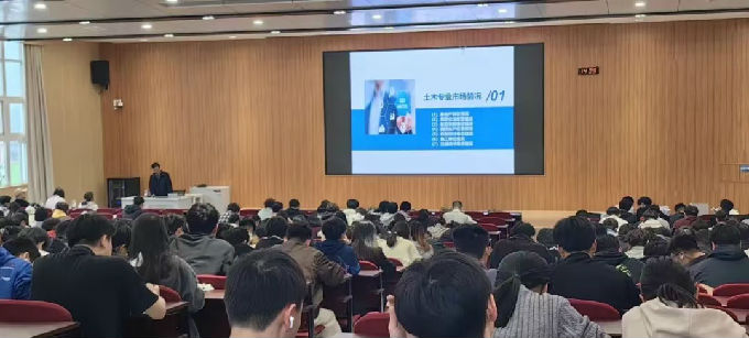讲座伊始,经验丰富的许经理如领航员般,从过去、现在、未来三个维度深入剖析土木行业发展脉络。他把自己和同事的工作经历,以及求职大学生案例化作素材,为同学们量身定制极具针对性的就业建议。这些建议如精准钥匙,打开了同学们对土木行业就业认知的新大门,让大家受益匪浅。