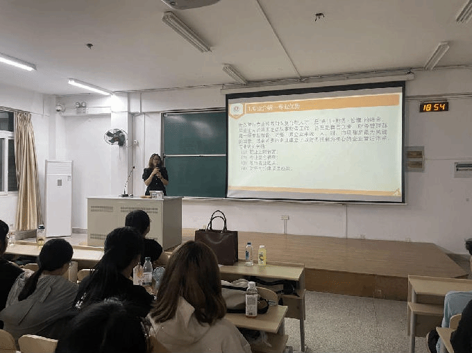 班主任蔡家立老师随后进行了发言,强调规划对本科生的重要性。蔡老师提到,大学生活充满机遇与挑战,尤其是在财务管理这样一个迅速发展的领域,合理的职业规划能够帮助学生清晰自己的职业目标,提高学习的针对性。她鼓励新生们积极参与社团活动、学术交流以及各类比赛,锻炼自己的组织能力和沟通能力,从而为未来的职场打下坚实基础。