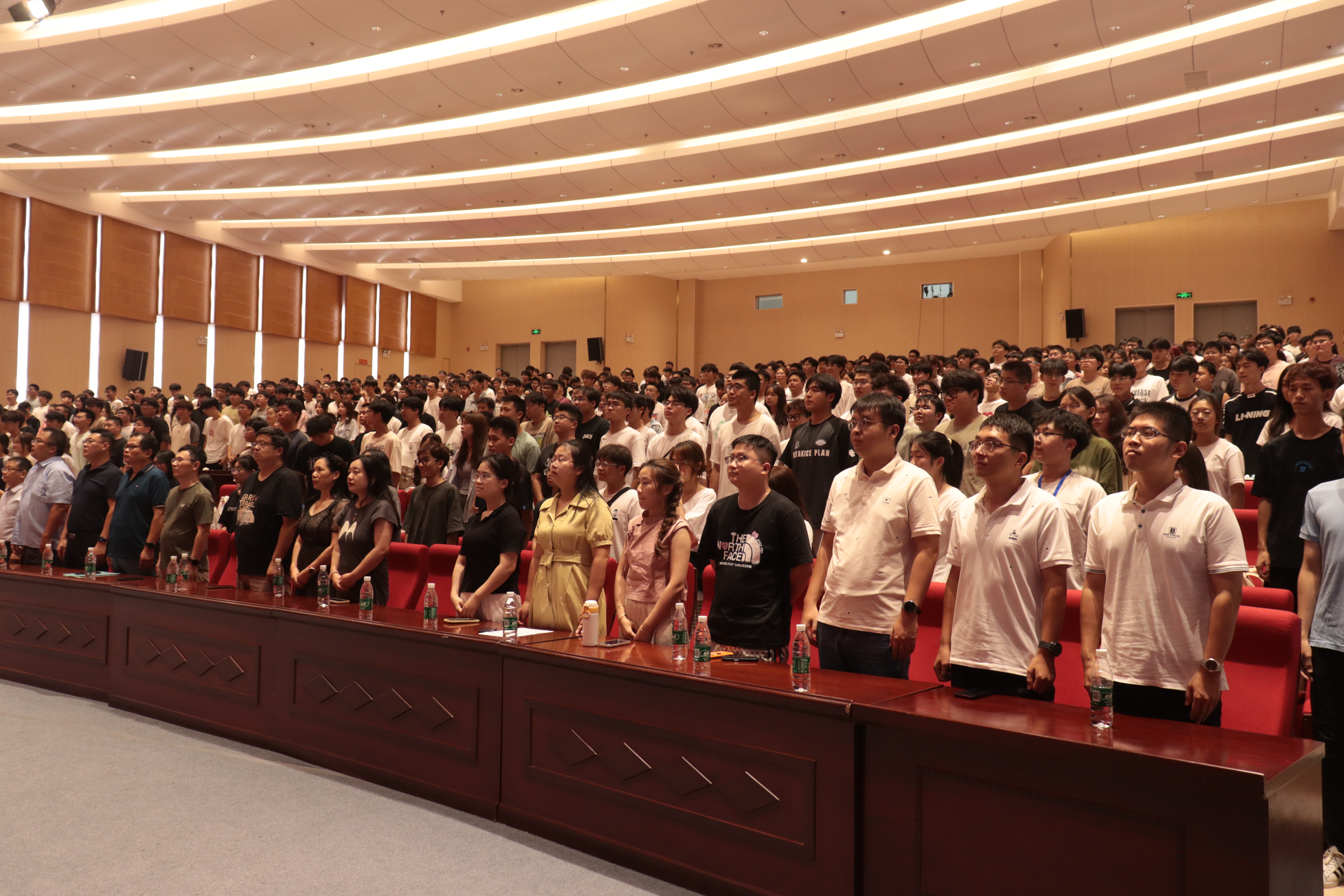 会上,沈峰书记致欢迎词,他对新同学们的到来表示热烈欢迎。随后,全体师生起立,共同奏唱国歌。