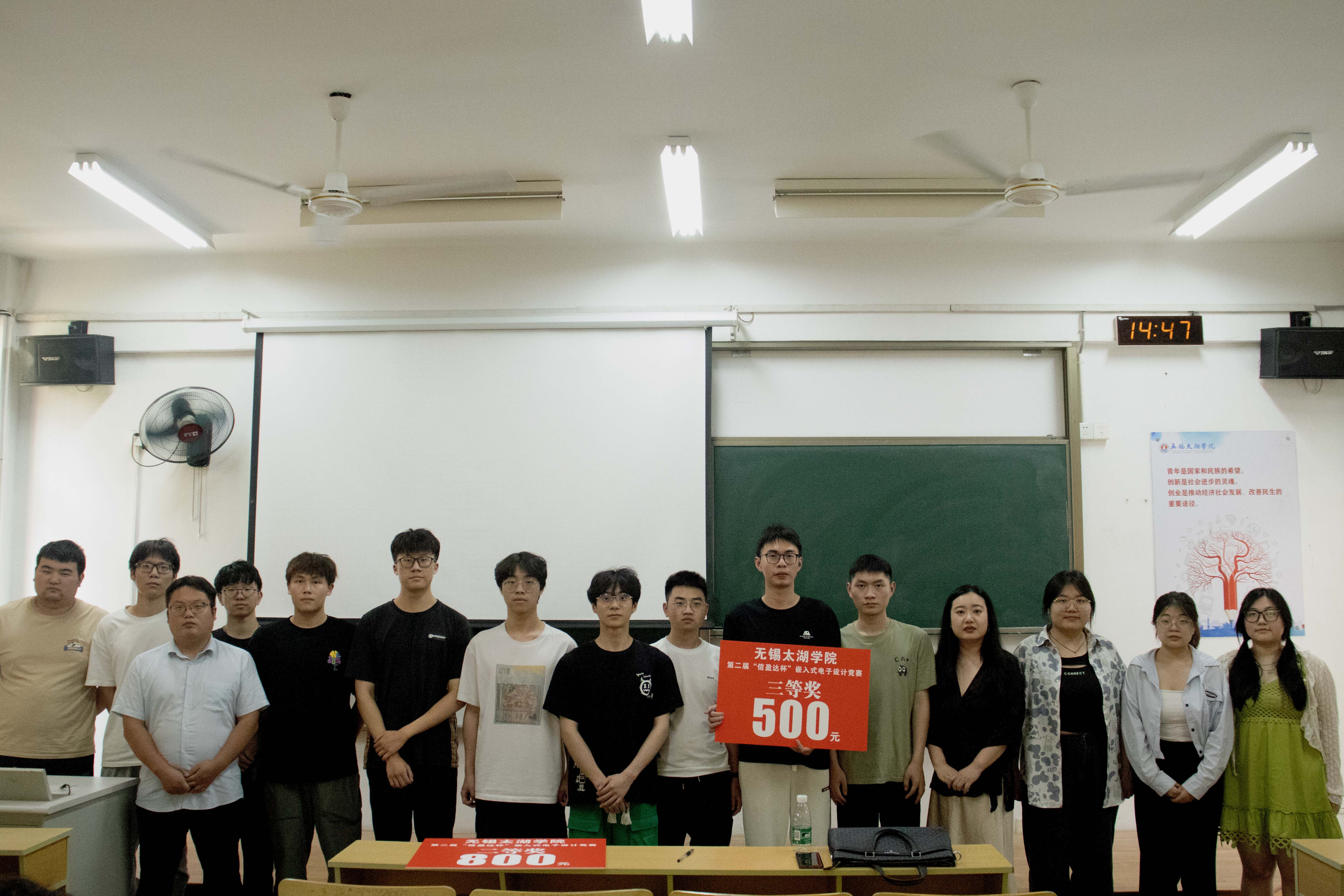 最后,经过评委老师打分评审出了决赛各参赛队员的排名。由物联网工程学院常务副院长成本茂为获奖选手颁奖并合影留念。