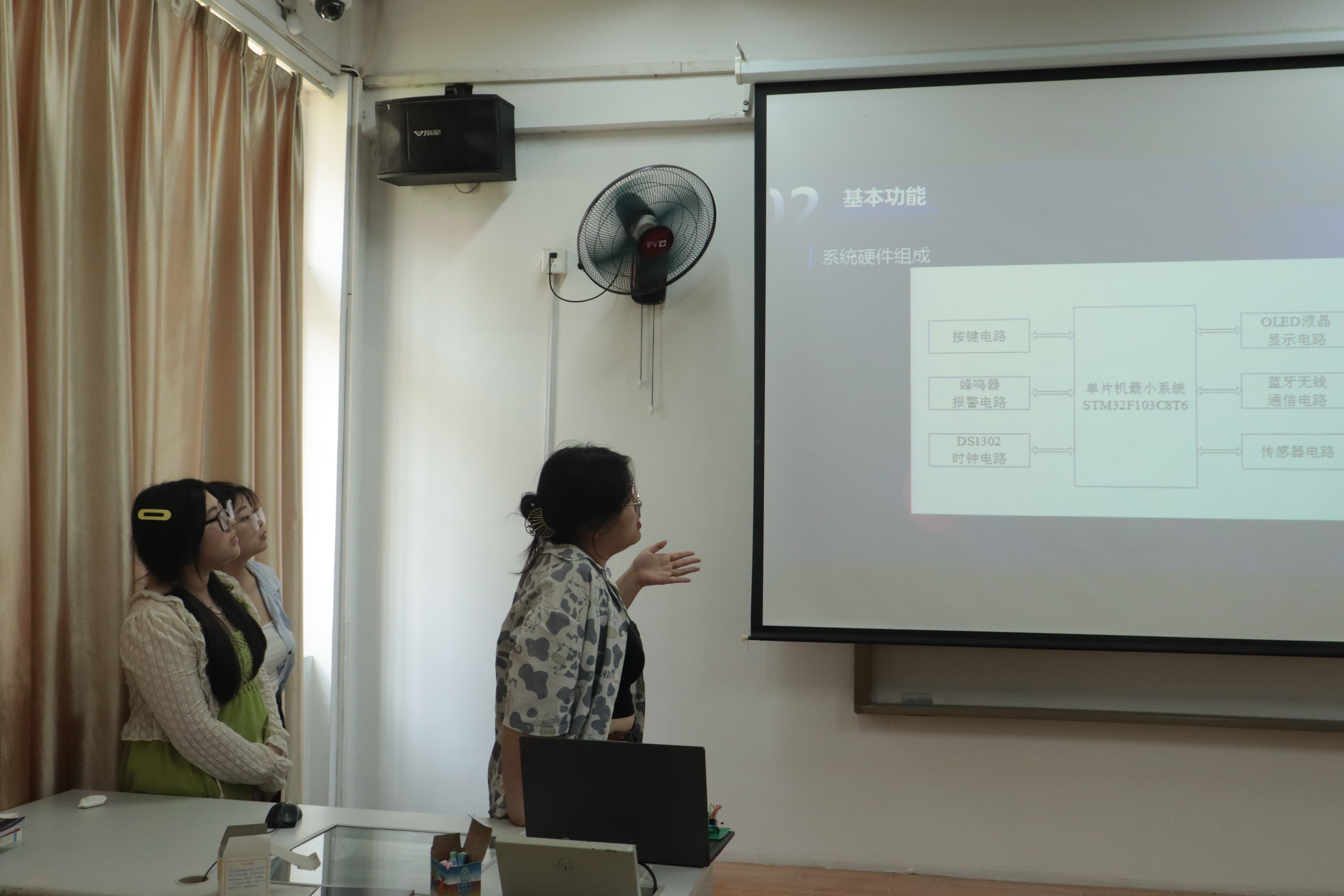 在答辩环节上,参赛者从容不迫地回答评委老师的问题,进行对自己作品功能以及运用知识的介绍。评委老师对各团队的作品进行了细致的点评,针对技术细节提出了许多建议,并鼓励同学们继续发扬创新精神,稳步前行,不断探索电子设计的新领域。