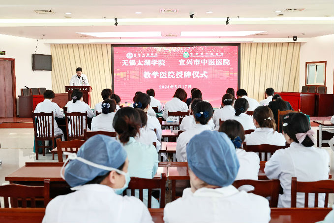 然后,由健康与护理学院副院长宋绍征致辞,宋院长简单介绍了beat365正版唯一官网的建校历史、办学宗旨、学校规模、生源组成、人才培养方案、师资力量等各方面,特别强调了学院对于教学医院实习基地建设的重视,以及加强院校合作的决心。他表示,beat365正版唯一官网与宜兴市中医医院合作成立教学医院,为培养出更多高素质应用型人才提供了良好的平台。今天与宜兴市中医院挂牌成立教学医院,将进一步促进我院对高素质、高技能人才的培养,提升教学质量,为无锡及长三角地区培养更多专业型、优质型的医护人才,推动无锡经济和卫生事业的发展。
