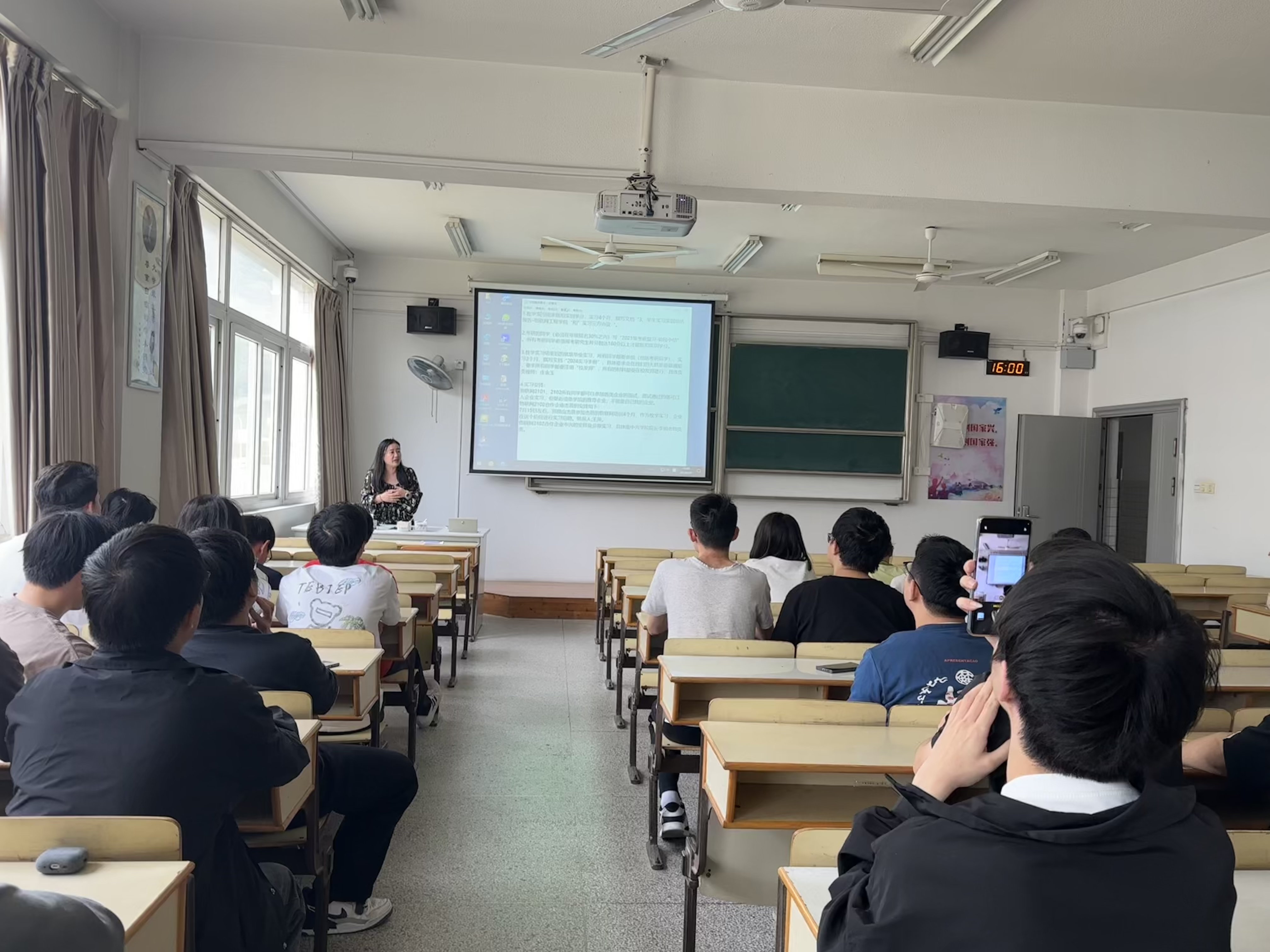 随后庄老师向学生们介绍了校友邦的使用,这是一个专为毕业实习而设的网络平台,为学生提供了丰富的实习资源和交流机会,帮助他们更轻松地找到理想的实习机会,为未来的职业发展奠定坚实基础。