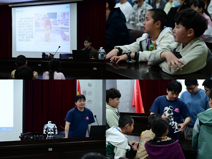 接着,智能装备工程学院学生分会文宣部成员叶志超操控机器人演示表演,与小朋友们共同互动,以趣味性教学,合理性引导,让小朋友们亲身感受机器人的魅力,满足大家对科技的好奇,以新奇创新的探索意识,迎接属于他们的未来技艺。最后,志愿者们与小朋友进行合影留念将这一瞬间定格,为本次志愿活动画上圆满的句号。