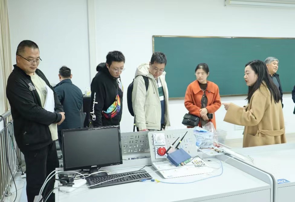 首先,由我院党总支沈峰书记和物联网工程专业负责人姚湘副教授等带领来访客人来到工科实验实训中心,参观我院ICT产教融合基地实验室和江苏省物联网应用技术重点建设实验室等相关实验实训场所。