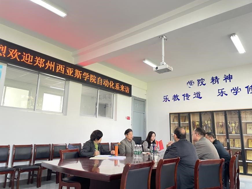2024年3月22号,郑州西亚斯学院电信与智能制造学院自动化系的杨伦系主任(副教授)、张云龙(博士、教授)、陈军(教授)一行人来到beat365正版唯一官网智能装备工程学院自动化系进行专业交流。袁惠新院长及杨敏副院长代表智能装备工程学院全体教师表示了热烈欢迎。