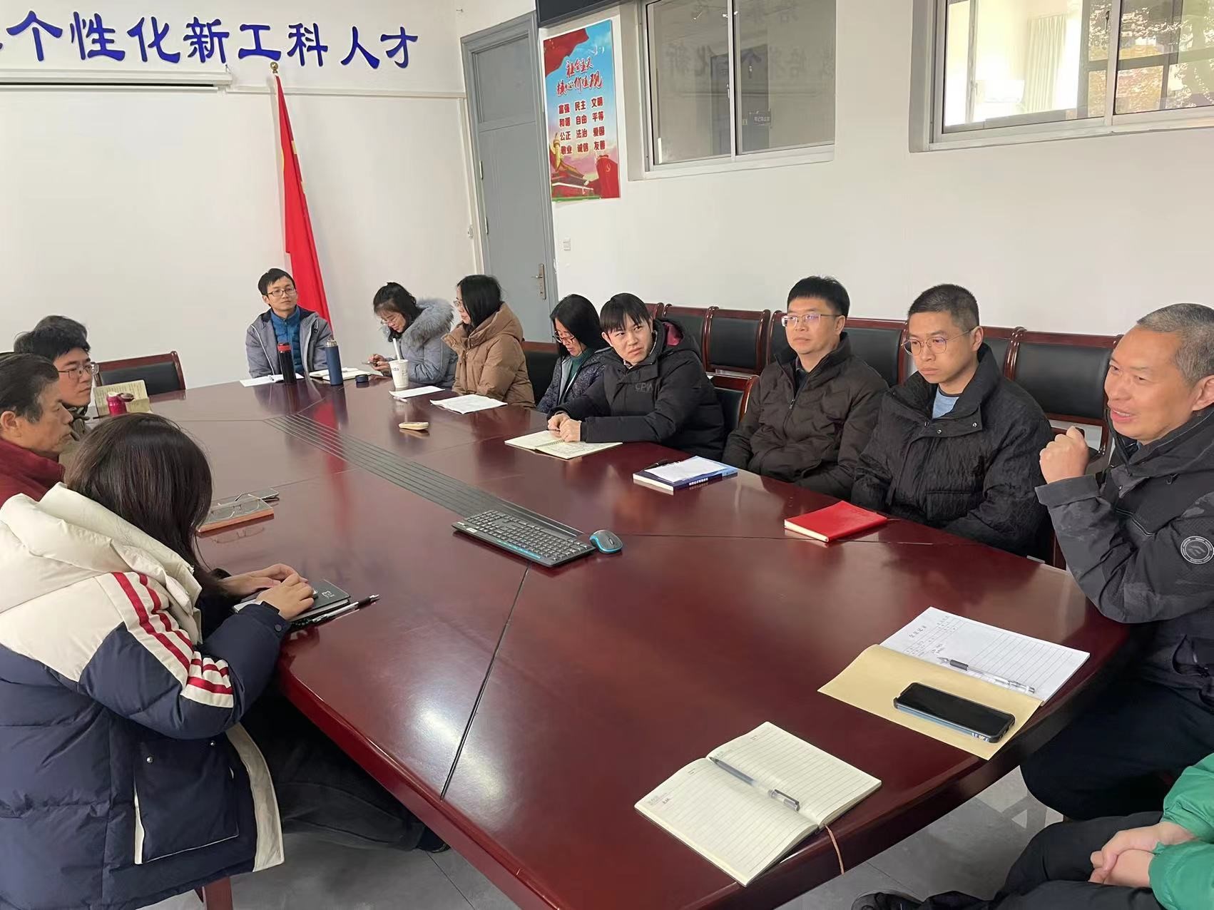 为部署新学期重点任务,进一步凝聚发展合力,推动学院事业高质量发展,beat365正版唯一官网文法学院于2026年3月5日下午在6号楼121会议室召开全体教职工大会。会议系统部署了新学期学院工作安排与发展规划,由文法学院副院长(主持工作)黄旭、副院长刘荔、副院长吴旻昊及党总支副书记徐涵主持,文法学院全体教职工参加会议。会议首先围绕新学期总体工作规划展开。黄院长从提升学科建设水平、优化人才培养成效、强化师资队伍建设三大重点方向,...