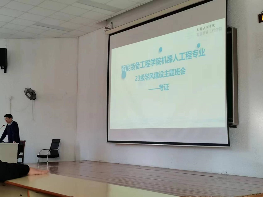 为加强学风建设,积极应对英语四六级及计算机二级考试,增强同学们的重视度,提高通过率,通过考证充实生活,证明自己。11月20日下午,智能装备工程学院机器人工程专业23级同学在8-412召开了学风建设主题班会-考证动员,会议由专业班主任吴阳副教授主持。