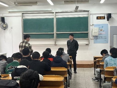 随后杨敏副院长针对贯通机电班级的期中考试成绩做了分析,指出班级学生高数基础弱的问题,指导学生在学习中要明确目标,制定学习规划,及时总结和反思。张亚勤主任细致地讲解了机械电子工程专业的人才培养方案,期待同学们能够发挥自身优势,在竞赛中大放异彩。