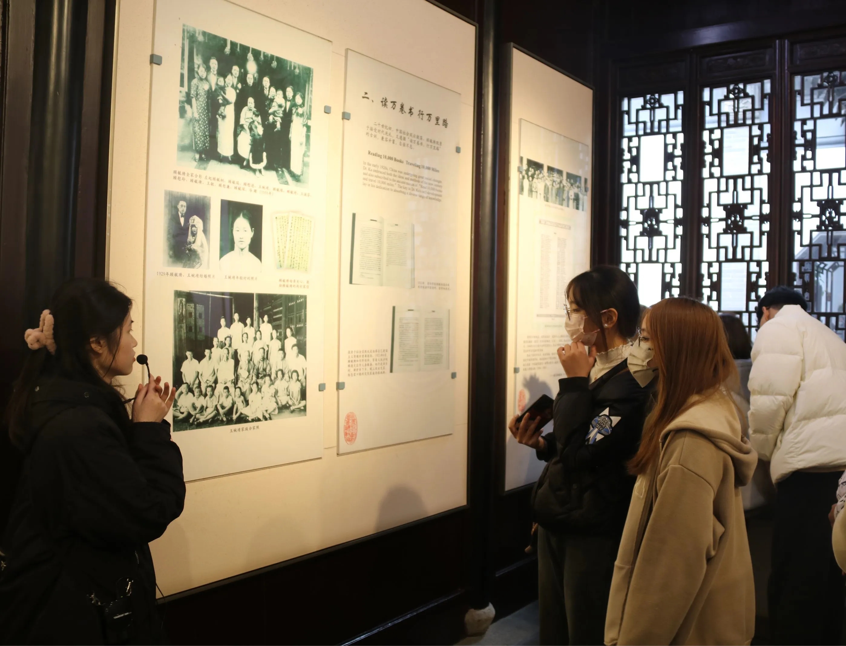 活动伊始,讲解员通过故居的片片展板向成员们讲述顾老的过往,让成员们体会到了他学术方面的高深造诣和杰出成就,以及他做人的洒脱与独立的思想。接着,在“爱国情深”的展馆里,成员们了解到了东林庭训对顾老投身爱国救亡运动的激励作用,从中也深刻感受到了顾老忧国忧民的切切之情与拳拳之心。然后,成员们欣赏了顾老参加受降典礼的油画,感受到了当时令人震撼的场景;同时,也了解了江南传统的建筑。