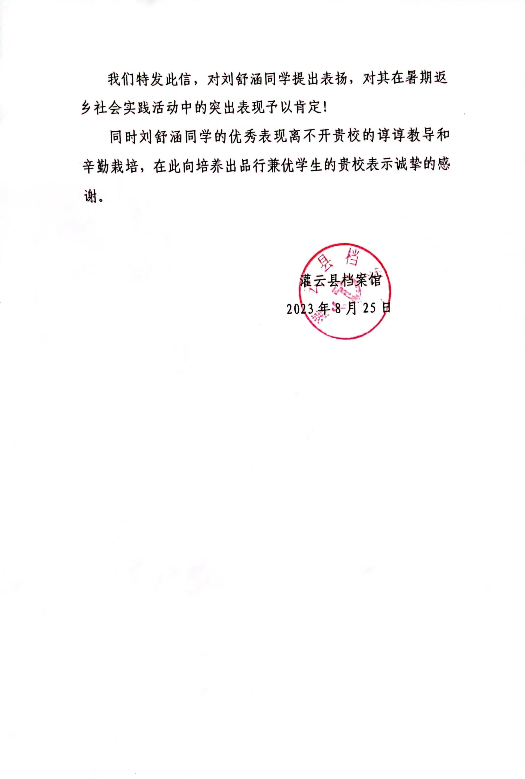2023年7月,审计2202刘舒涵同学参加“云雁归巢-兰台行”暑假实践活动,前往灌云县档案馆进行为期一个月的实习。活动结束后,我院收到了来自灌云县档案馆的感谢信,信中多次赞扬了刘舒涵同学暑期在档案馆中的优秀表现。因此,本次采访邀请到了刘舒涵同学参加。