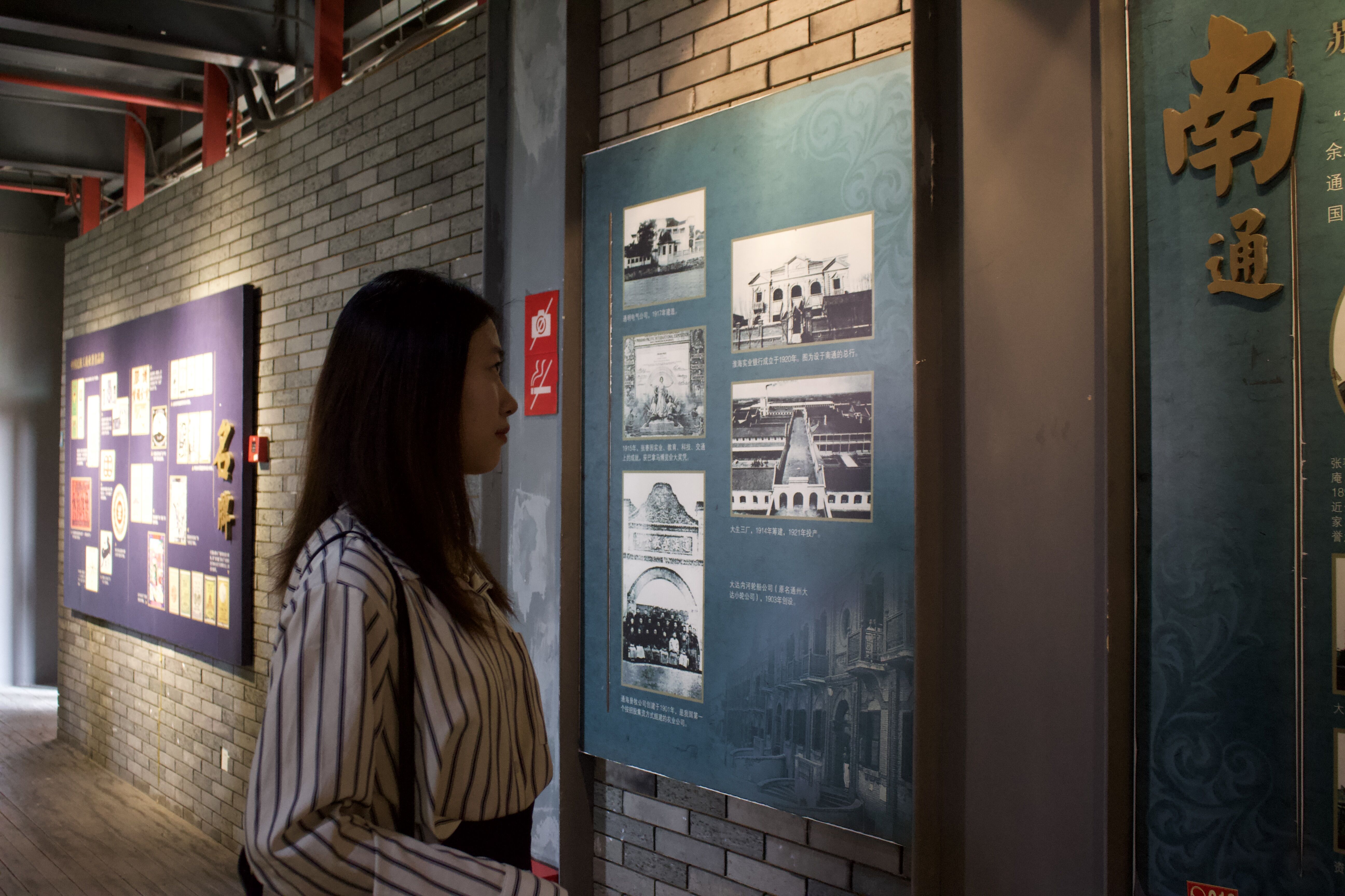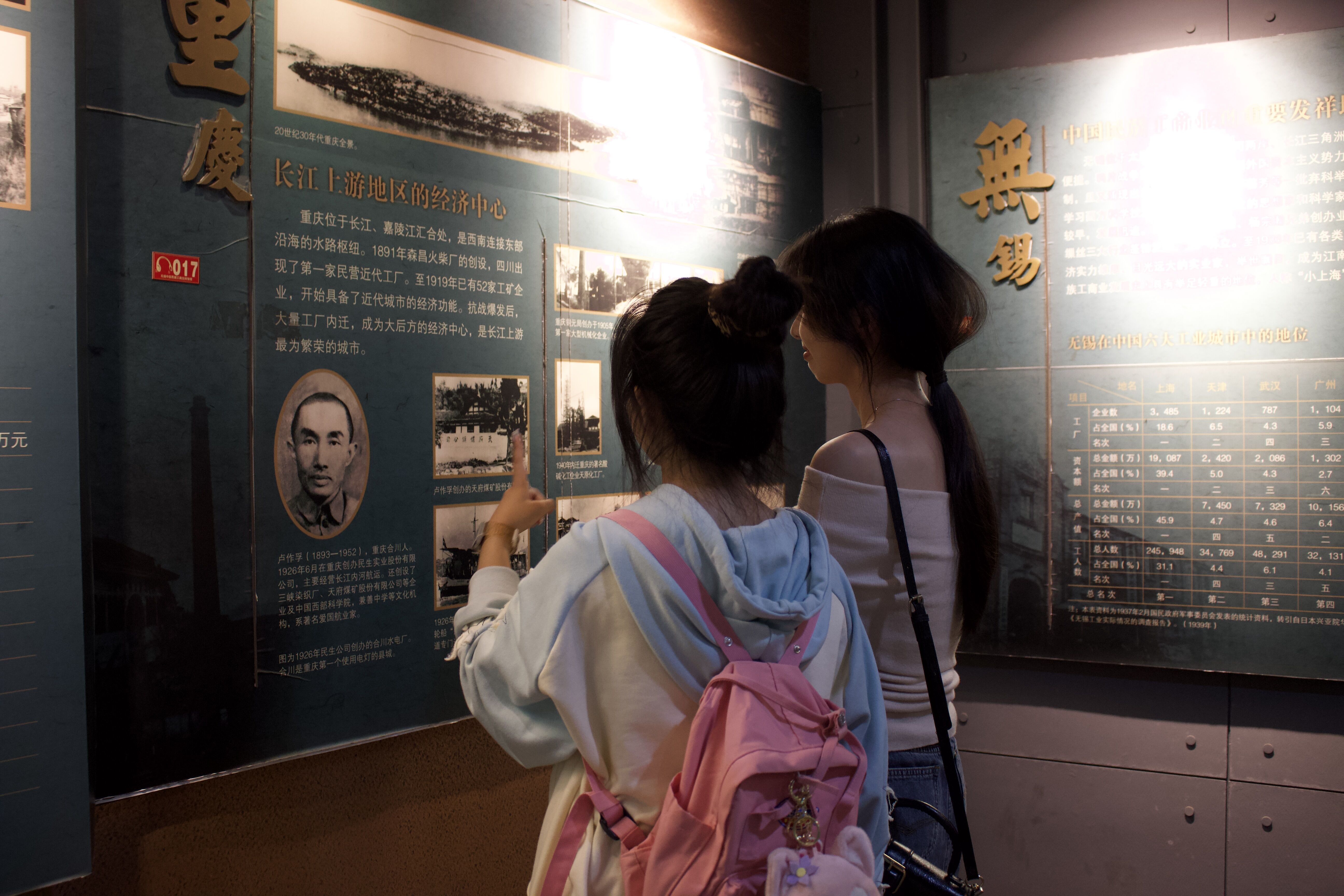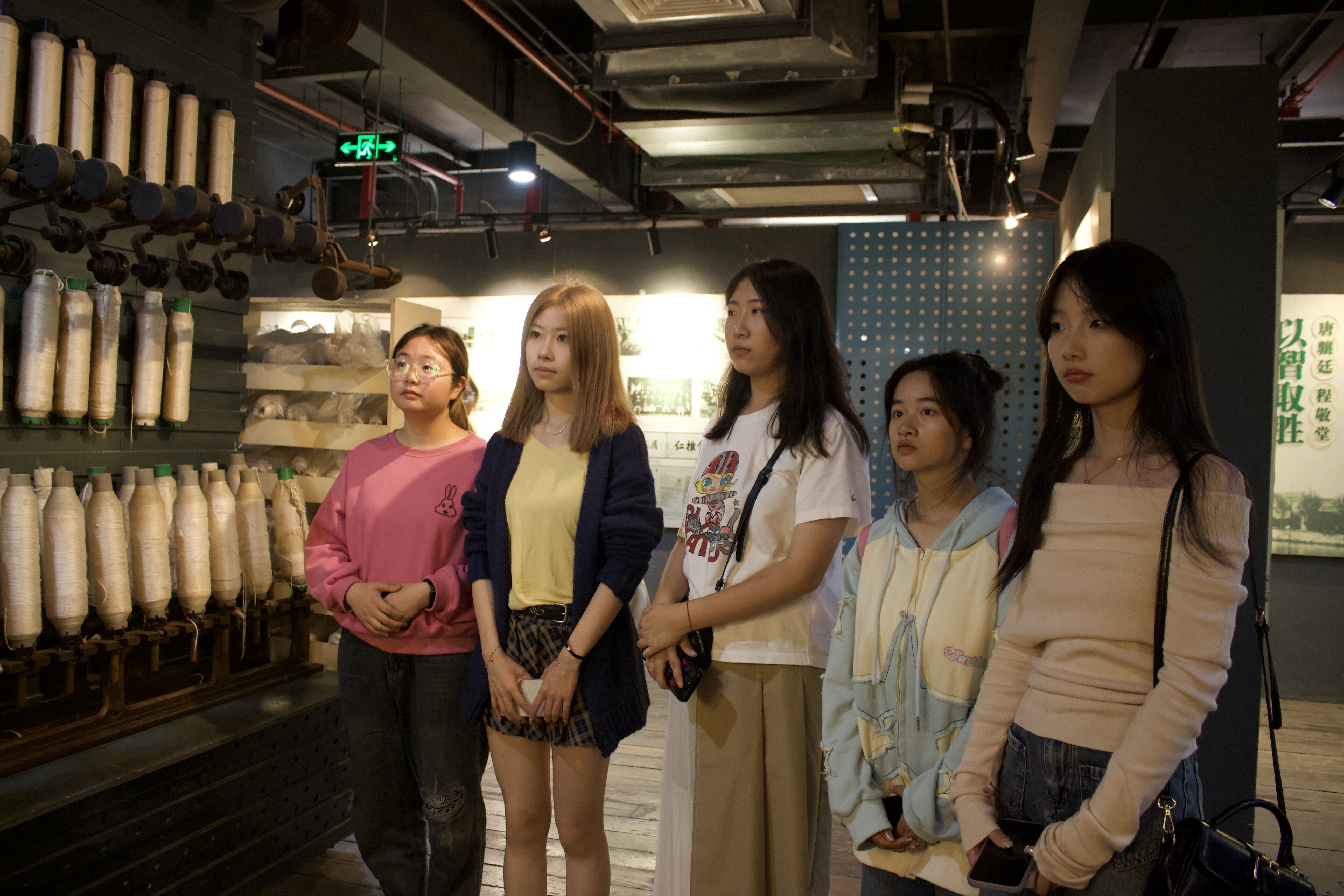 首先,同学们跟随讲解员来到了“中国民族工商业发展史”展区,墙上写有“敢创人先,坚韧刚毅,崇德厚生,实业报国”的锡商精神。其中荣氏兄弟创办的无锡茂新面粉厂是中国民族工商业最早的企业之一,也是中国近代民族工业的一个典型标本。从创办、兴盛、被毁、重建到解放后新生经历了一条曲折的道路,见证了百年来中国民族工商业的变迁。