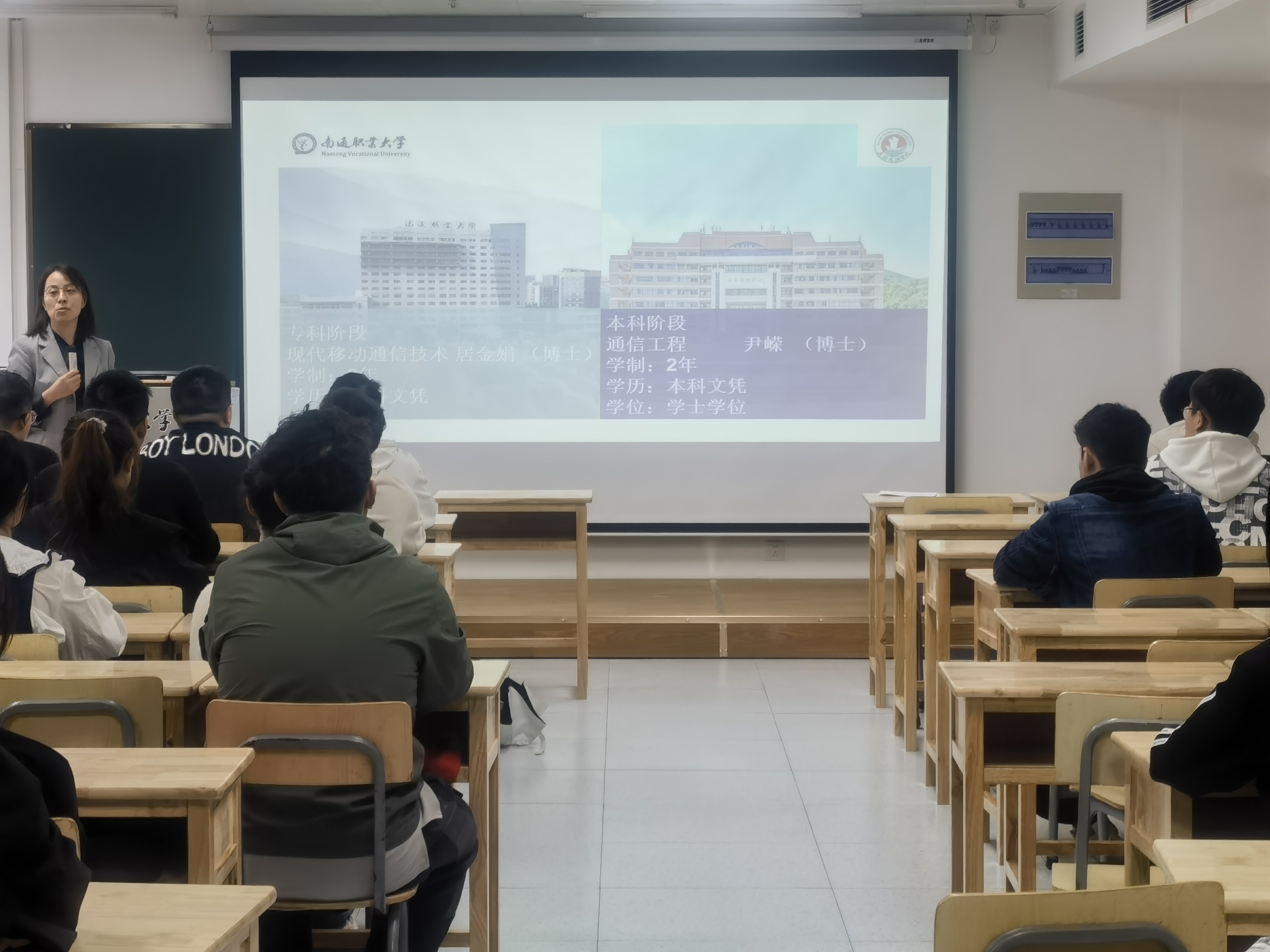 此次新生入学教育由南通职业大学通信专业负责人居金娟老师主持。她首先介绍了3+2项目的基本情况,并详细介绍了专科3年的学习情况和注意事项。接下来尹嵘老师详细介绍了beat365正版唯一官网物联网工程学院通信专业的发展历程、专业特色以及就业前景等方面的情况,为南通职业大学的新生提供了全面的了解和参考。