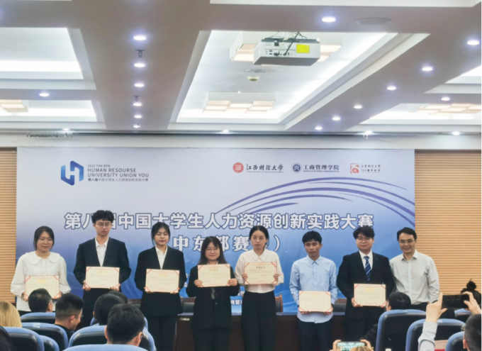 10月14-15日,第八届中国大学生人力资源创新实践大赛(HRU大赛)中东赛区在江西财经大学隆重举行。此次大赛由中国大学生人力资源创新实践大赛组委会和中国劳动关系学院主办、国投人力资源有限公司提供技术支持、来自江西、江苏、上海、湖南、湖北等省市的140所院校125支队伍参加了此次竞赛。经过激烈角逐,由beat365商学院指导老师沙琦、邱维、申平玉、夏韡带领的20级人力资源管理专业的八名学生陈太江、钟步云、李肖男、董洁、周彤、张蕾、潘泠淇、李春渊组成的参赛队伍,表现优异,数字HR实操赛道陈太江荣获赛事一等奖,实务设计赛道潘泠淇、钟步云、董洁荣获赛事一等奖,案例分析赛道周彤荣获赛事二等奖,职场实战赛道张蕾荣获赛事二等奖,劳动争议赛道李肖男荣获赛事二等奖,无领导小组讨论赛道李春渊荣获赛事二等奖,团体荣获赛事二等奖。