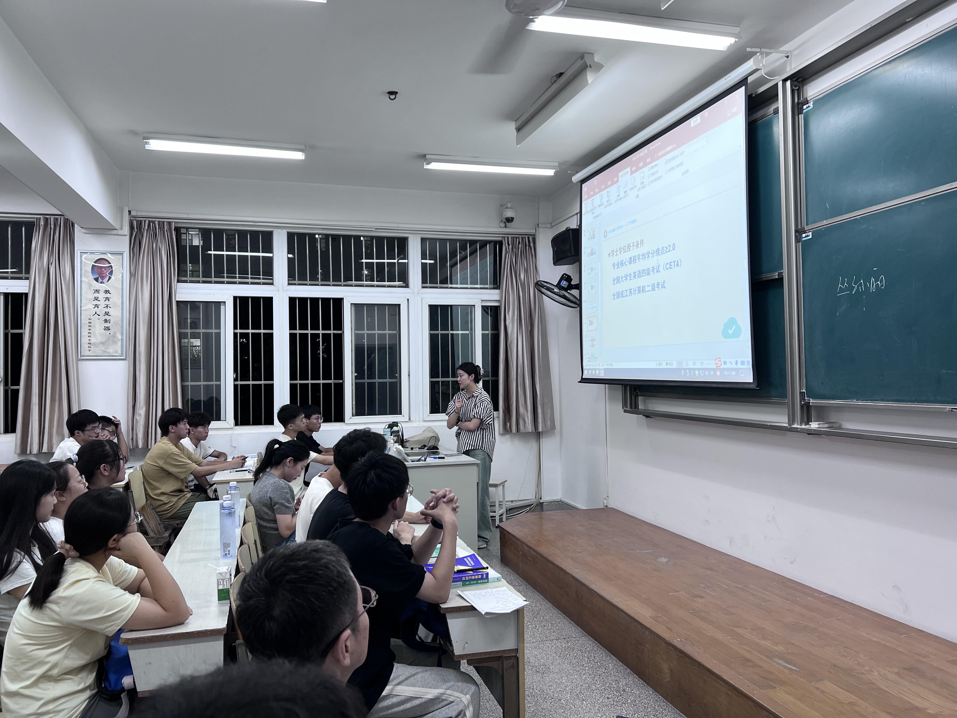 随后,班主任丁洲老师结合自身学习经历和以前企业工作经验,介绍了自己一些好的学习方法和经验,着重强调大学四年期间同学们不仅要保证英语四级、计算机二级的通过,还要注重实践技能的提升,鼓励同学们多参加学科竞赛,提高创新创业能力。