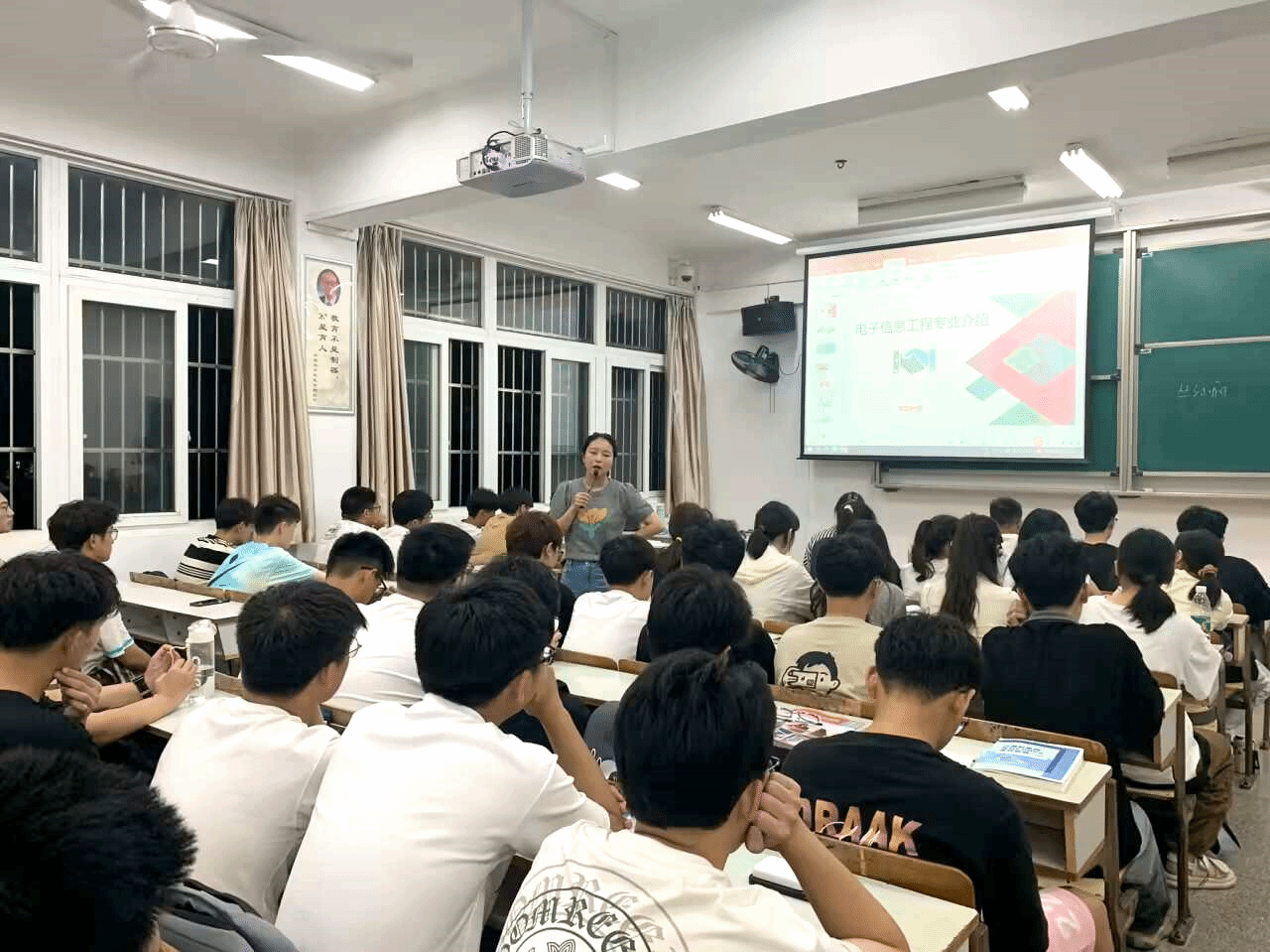 最后,电子工程系林成浴教授在总结了前面几位老师讲话内容的基础上,借用清华标语“为祖国健康工作五十年”鼓励同学们要多参加体育运动,强健体魄。同时希望同学们以选择电子信息工程这样一个品牌专业、一流本科专业为荣,把握大学四年的机会,争取四年后塑造一个更全面、更立体的自己,创造更好的未来!