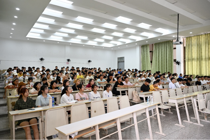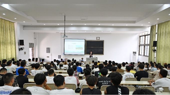 9月11日下午,智能建造学院邀请校党委委员、学工处处长吴学林在6号楼121教室为学院2023级全体新生举行“开学第一课”宣讲活动。
