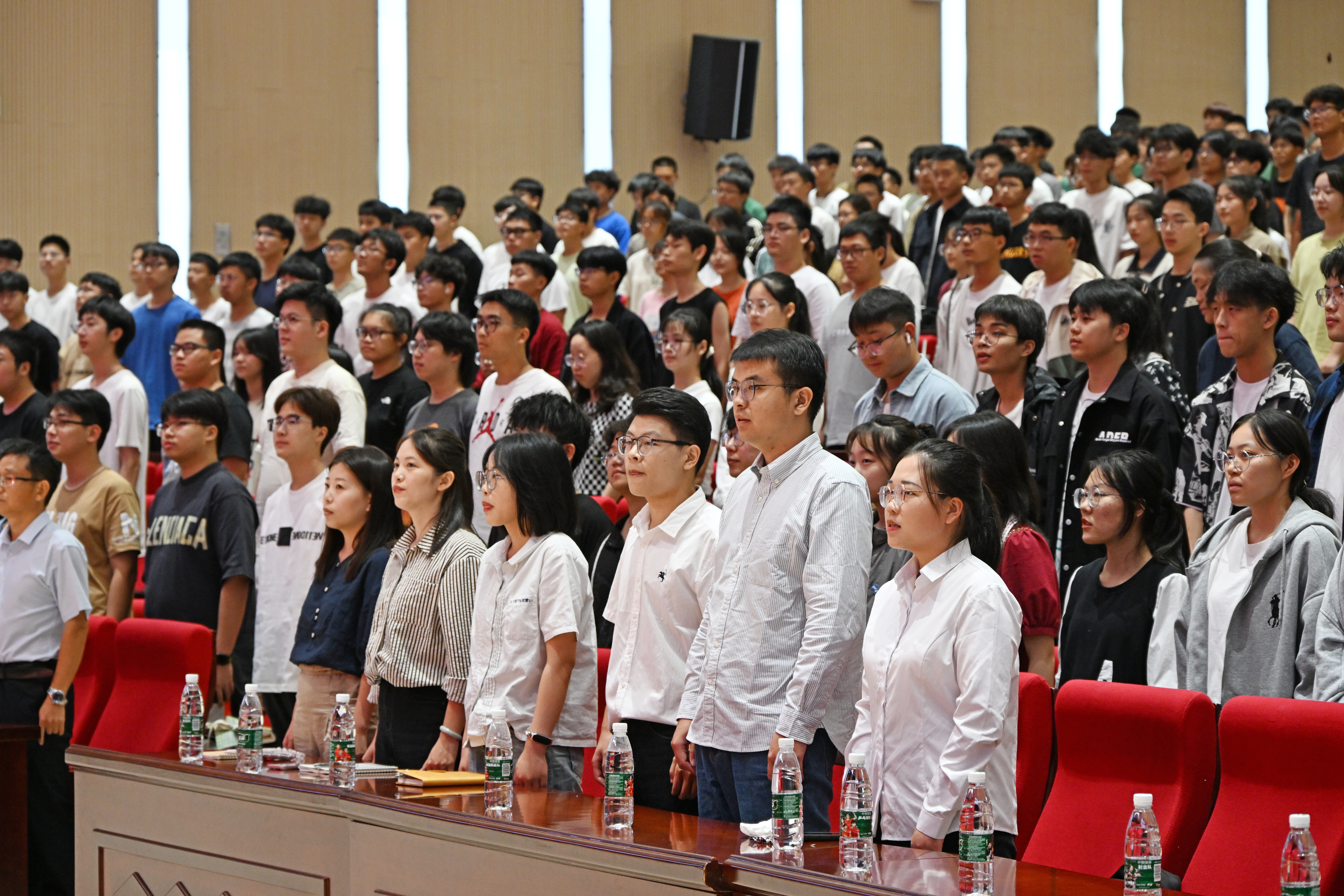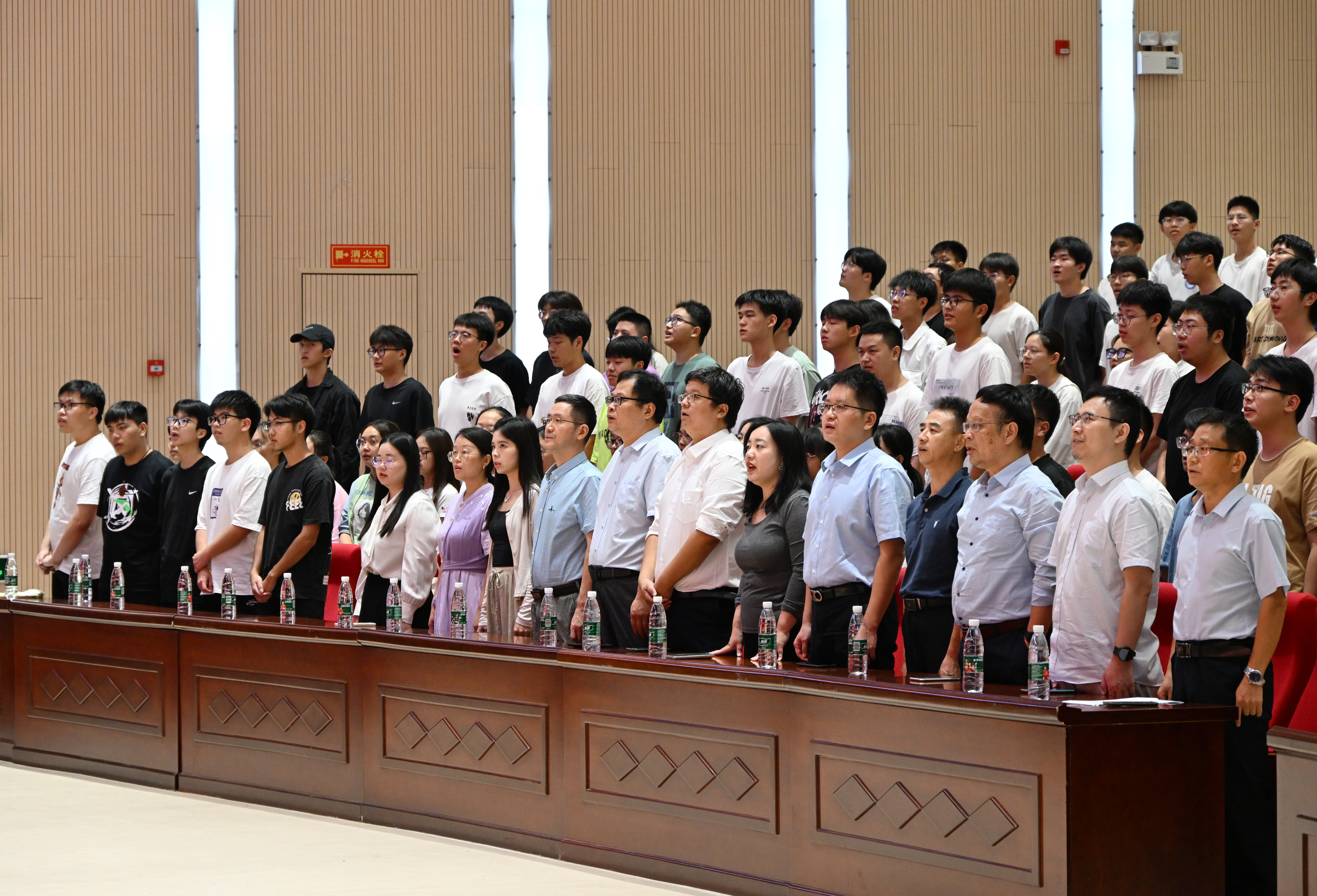 接着,全体师生起立,奏唱国歌。