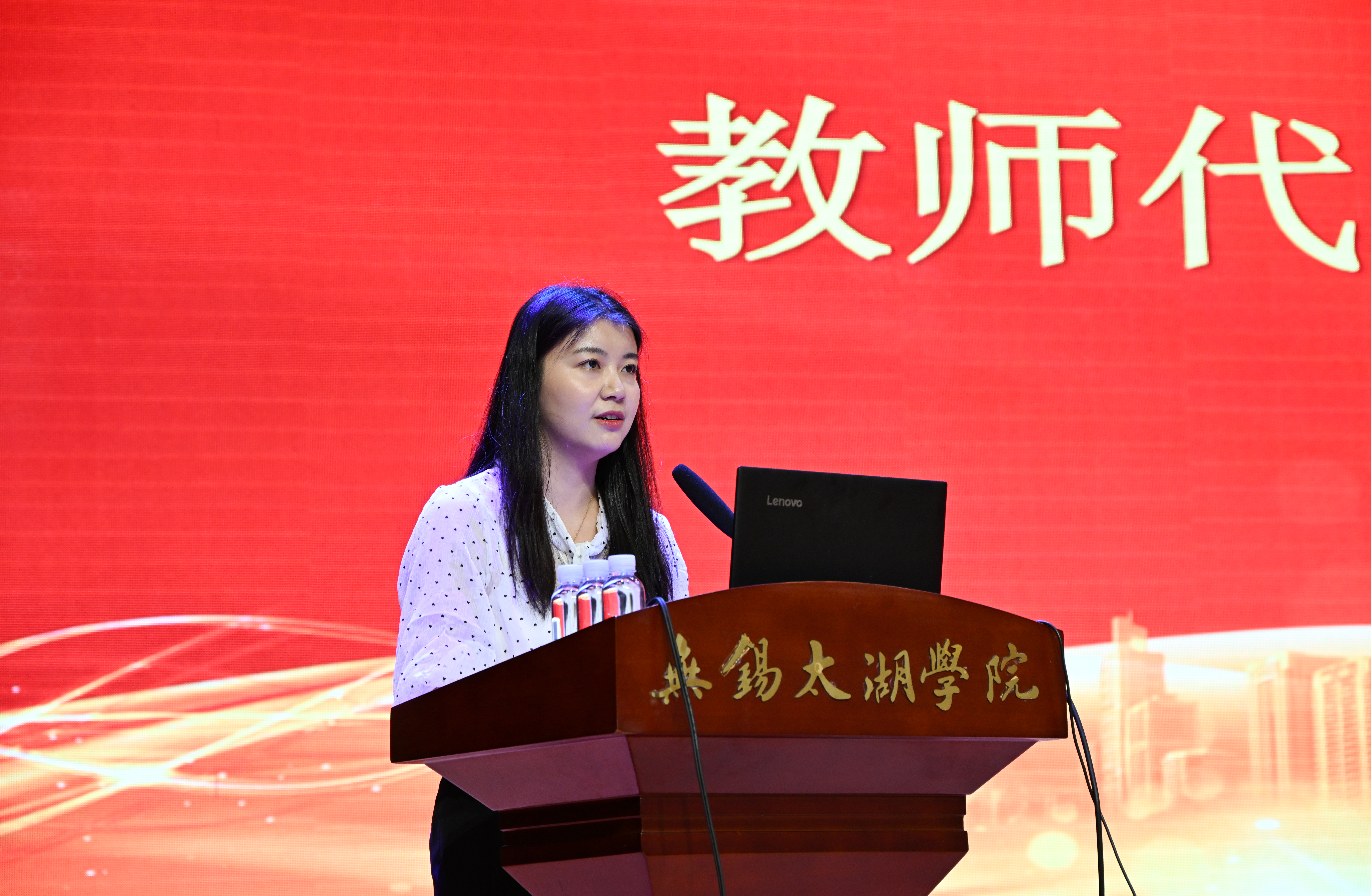 然后,由电信2303班班主任丁洲老师作为教师代表发言,她为新生分享了几点建议:要坚定理想信念,坚守价值准则;要珍惜学习机会,提高专业水平;更要参与社会实践,增强竞争力;祝愿新生开启一段美好新征程,实现抱负,飞扬青春。