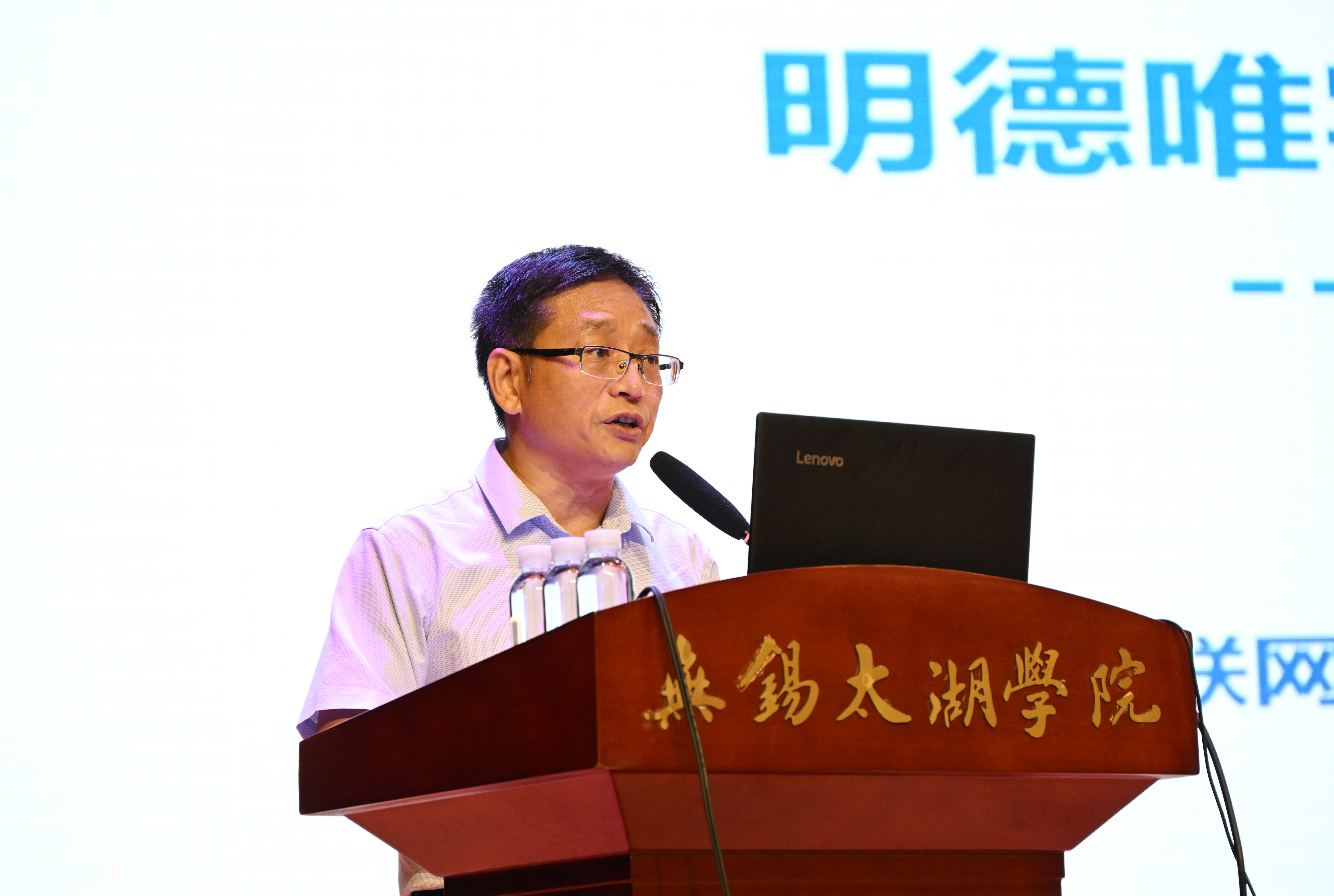 紧接着,由物联网工程学院常务副院长成本茂教授致辞,他代表学院全体师生对大一新生的到来表示热烈的欢迎和衷心的祝贺。成教授首先简要介绍了物联网工程学院的基本情况,其次成教授指出,作为新时代的大学生,既要成为知识的接受者和传播者,更要成为新知的生产者和创造者,寄语同学们要树立远大理想,锤炼意志品格,争做时代先锋的弄潮儿。他对新生提出几点希望:一是志存高远,涵养正气,做关注国家命运和人民幸福的好青年;二是锐意创新,敢想敢干,做无惧风浪、勇于前行的追梦人;三是知行合一,向善尚美,做勤学善思、德才兼修的模范者。