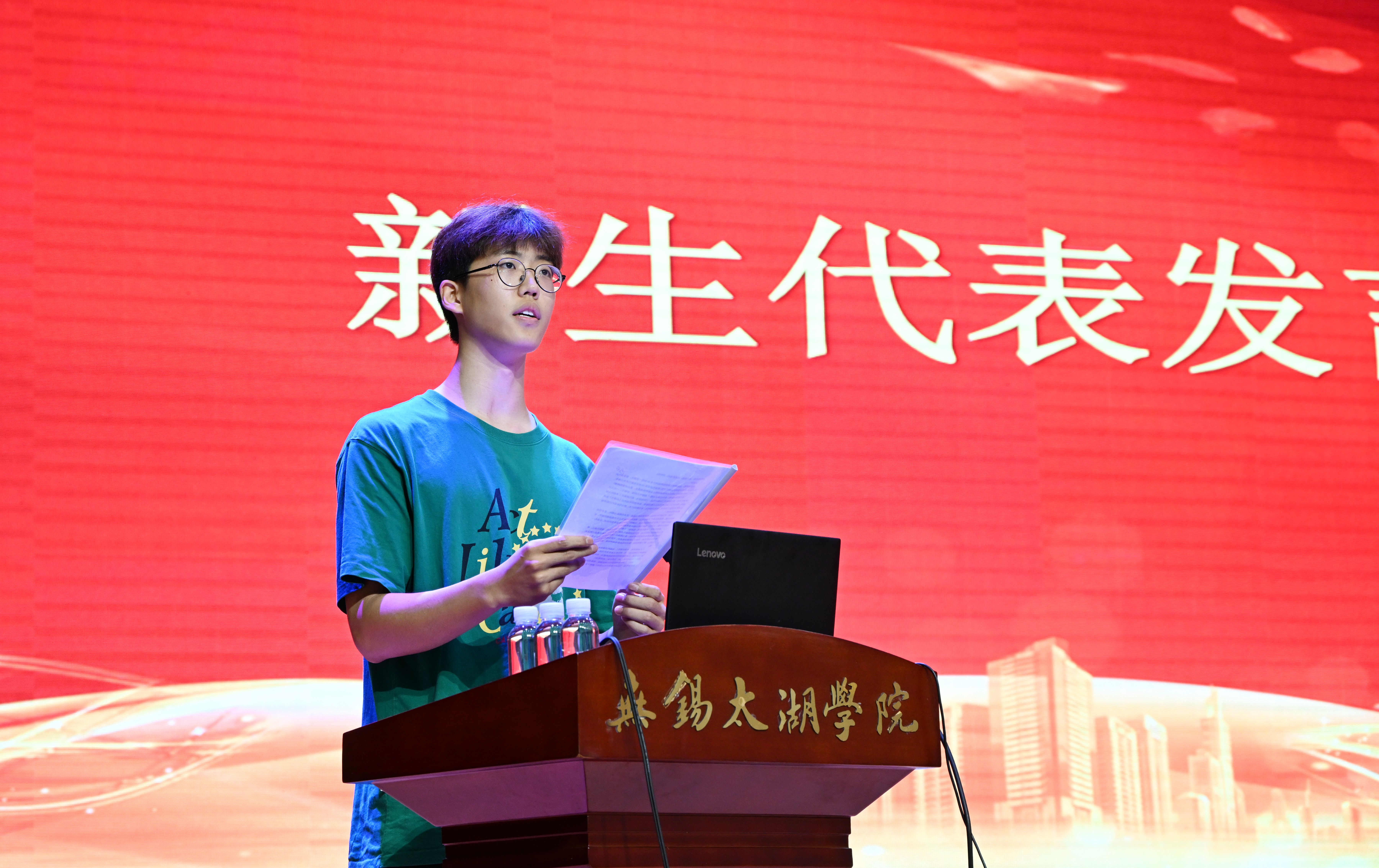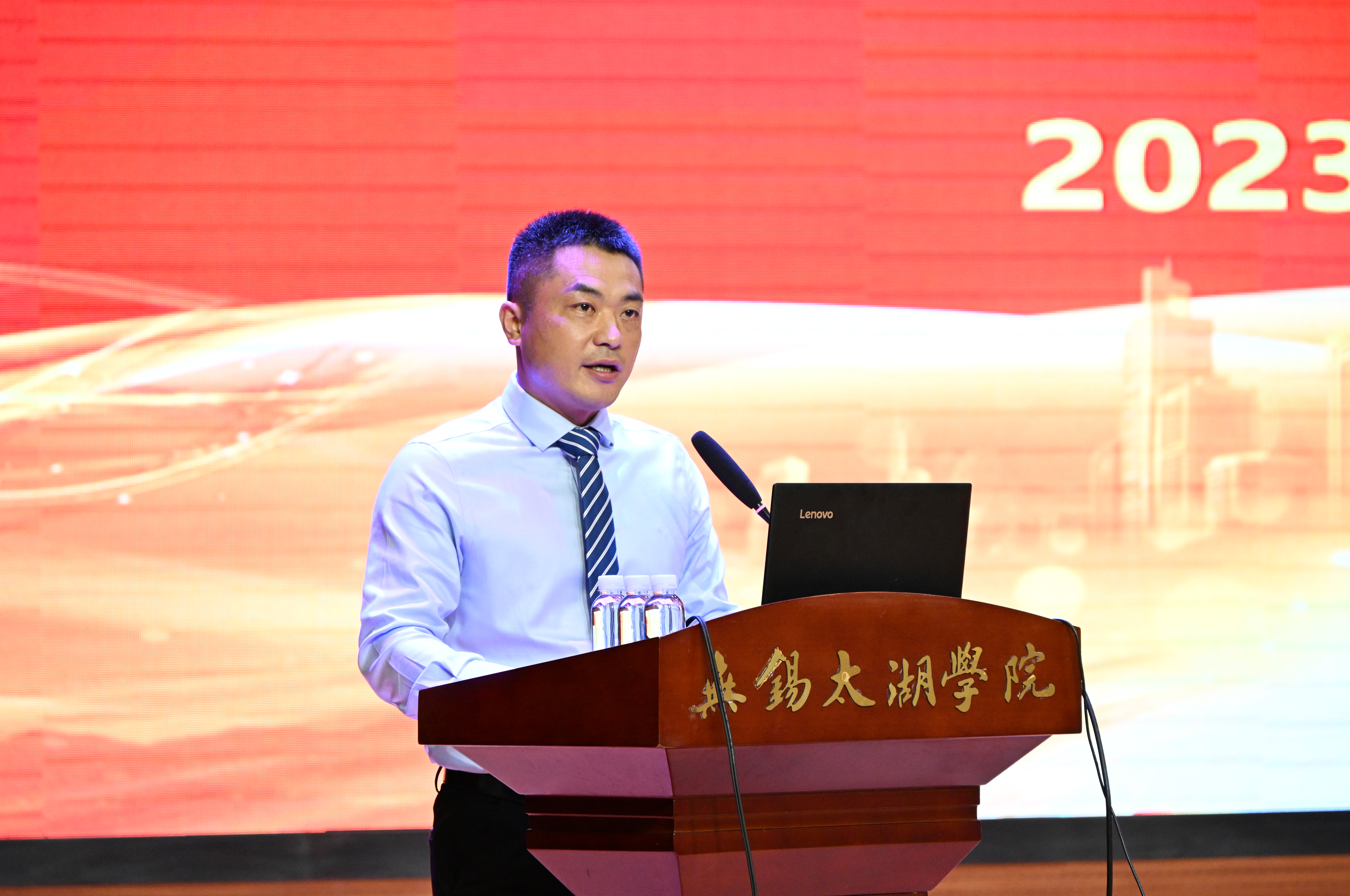 最后,由物联网2301班巴晋豪同学作为新生代表发言,他表示在大学生活中将勇担使命,积蓄底气;坚定信念,志存高远;学会包容,团结友爱。胸中有丘壑,立马镇山河,他将用脚步丈量祖国大地,用眼睛发现中国精神,用耳朵倾听人民呼声,用内心感应时代脉搏,把对祖国血浓于水、与人民同呼吸共命运的情感贯穿学业全过程、融汇在事业追求中。